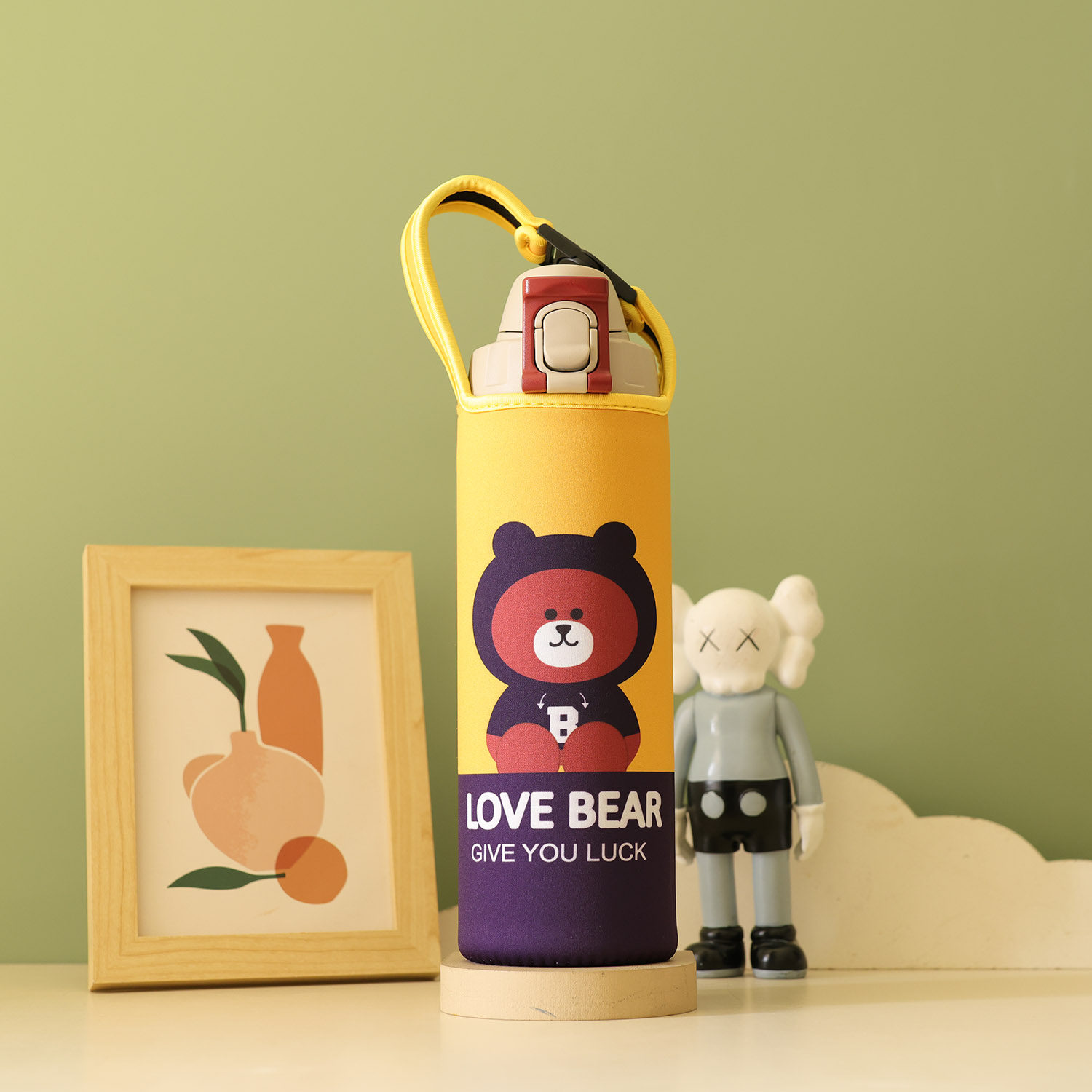 时尚卡通便携杯套膳魔法1000ML复古大容量保温杯师手提斜挎保护套