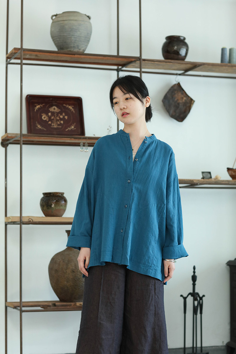 大拙秋季美到犯规苎麻茶歇布衣衬衫经典衬衫201123
