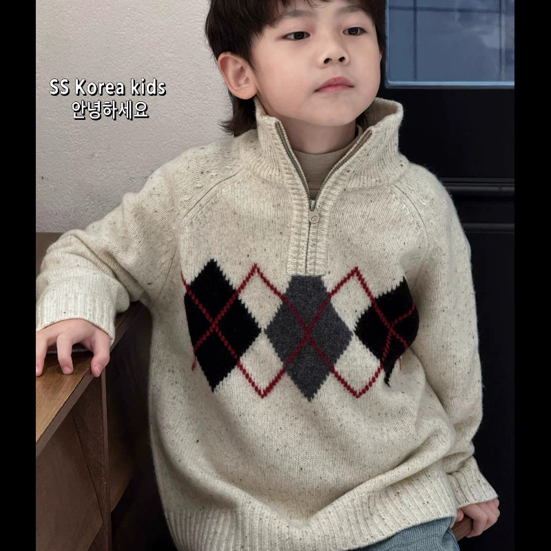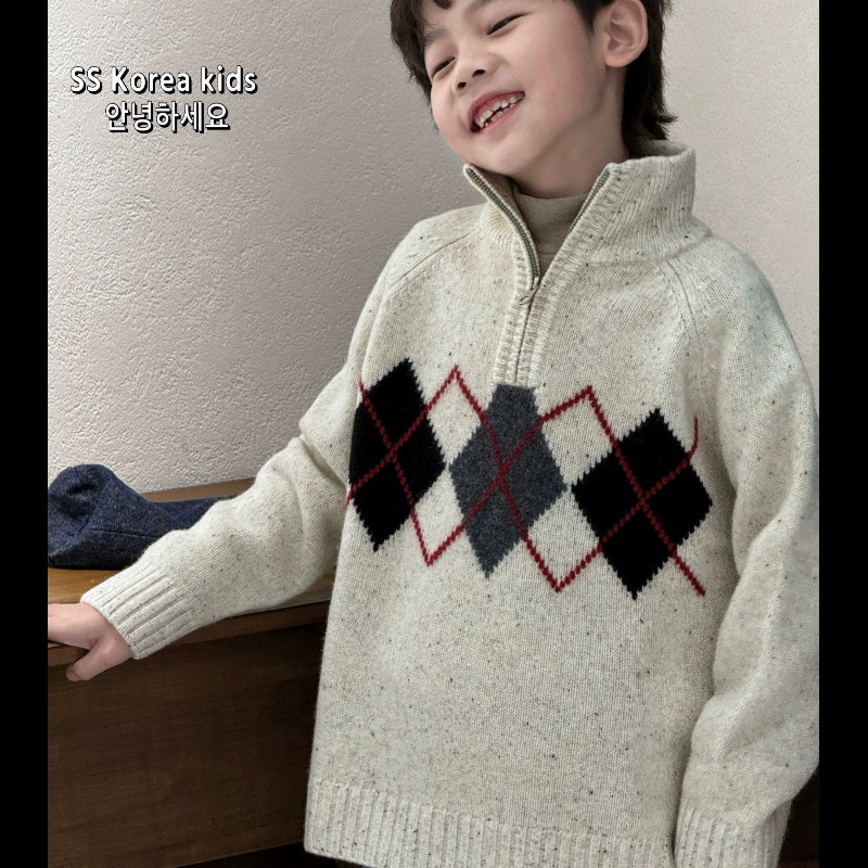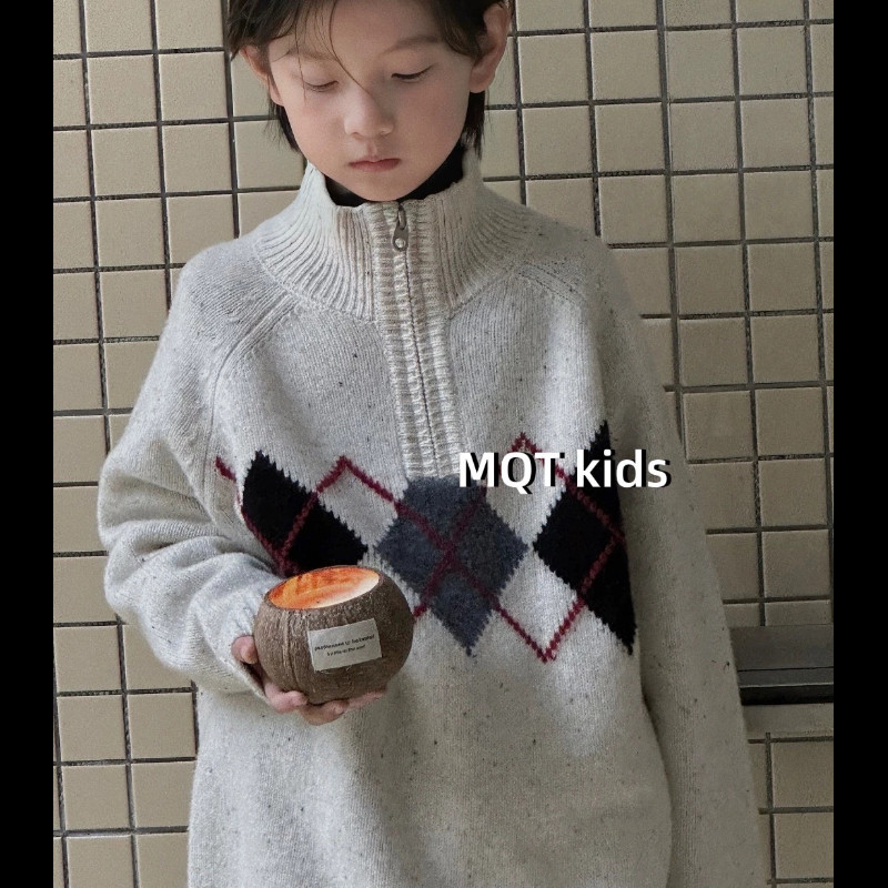 实体品牌儿童时尚韩系2025新款洋气男童女孩冬装青少年半拉链毛衣
