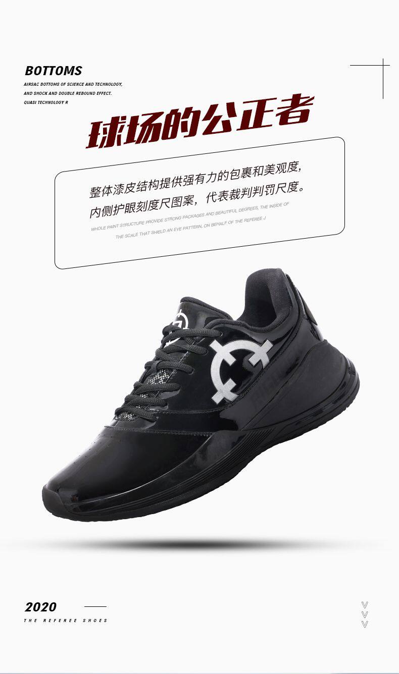 正品准者篮球裁判鞋黑色漆皮执裁CUBA大学生同款亮黑男女防滑缓震