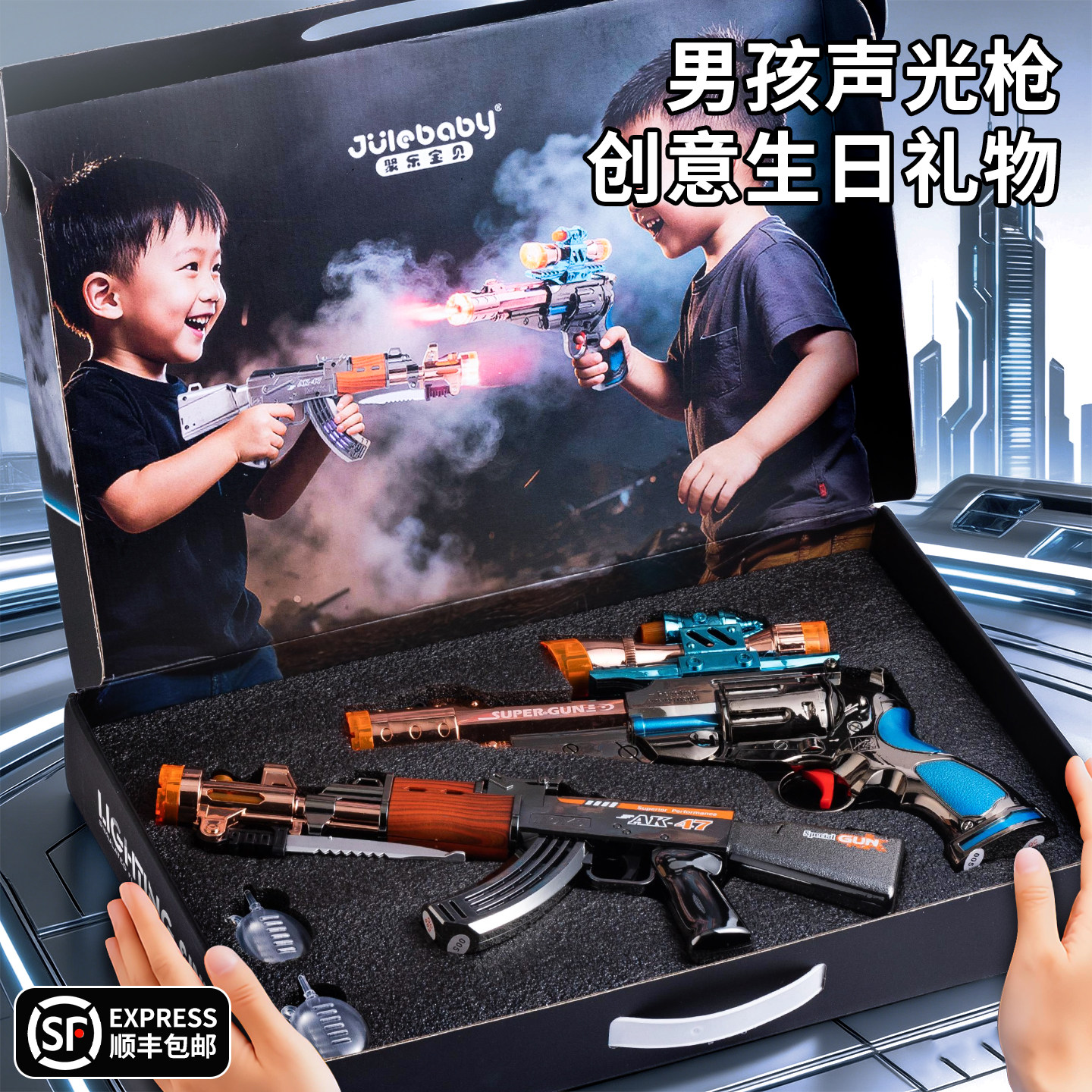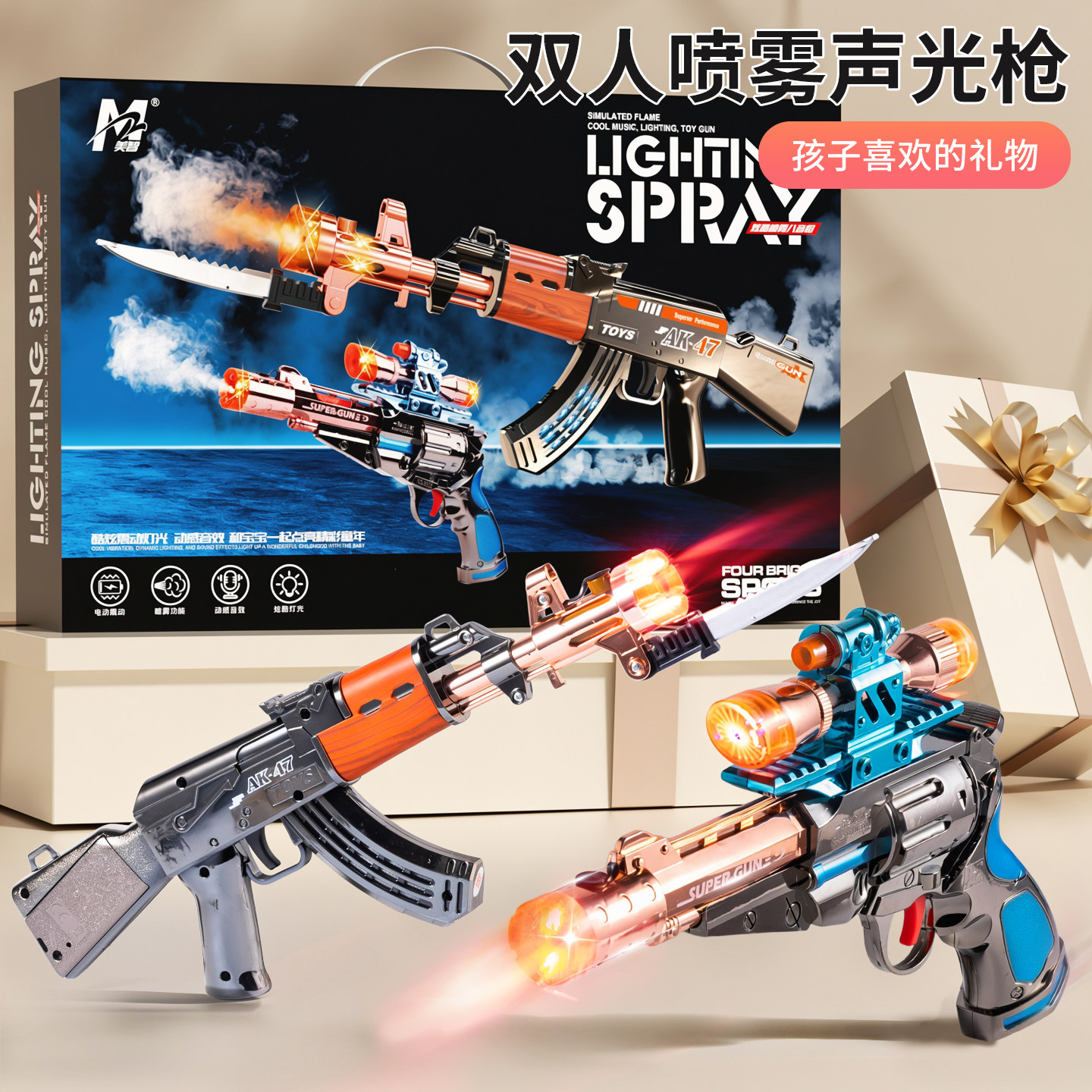 311线报网描述:男孩指定的礼物~喷雾声光枪礼盒
