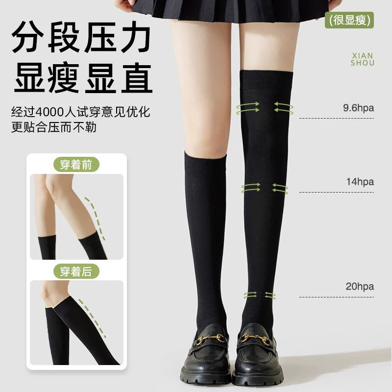 311线报网描述:压力小腿袜女强压显瘦长筒过膝袜薄款白色jk
