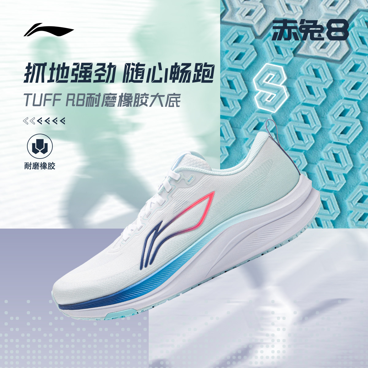 李宁跑步鞋 赤兔8 男女款反光透气减震回弹防滑耐磨竞速训练跑鞋