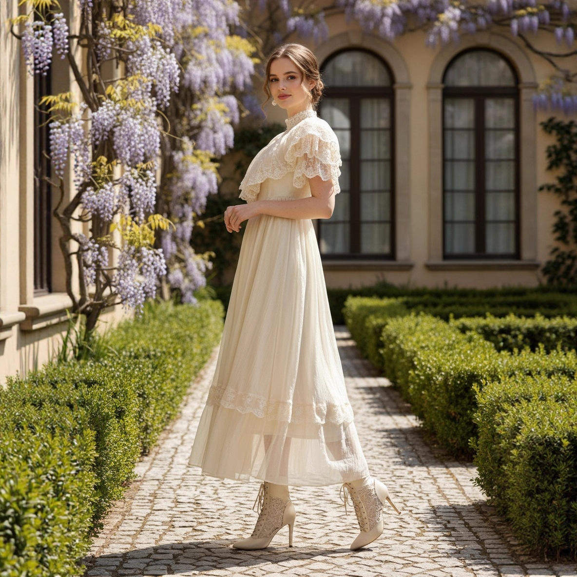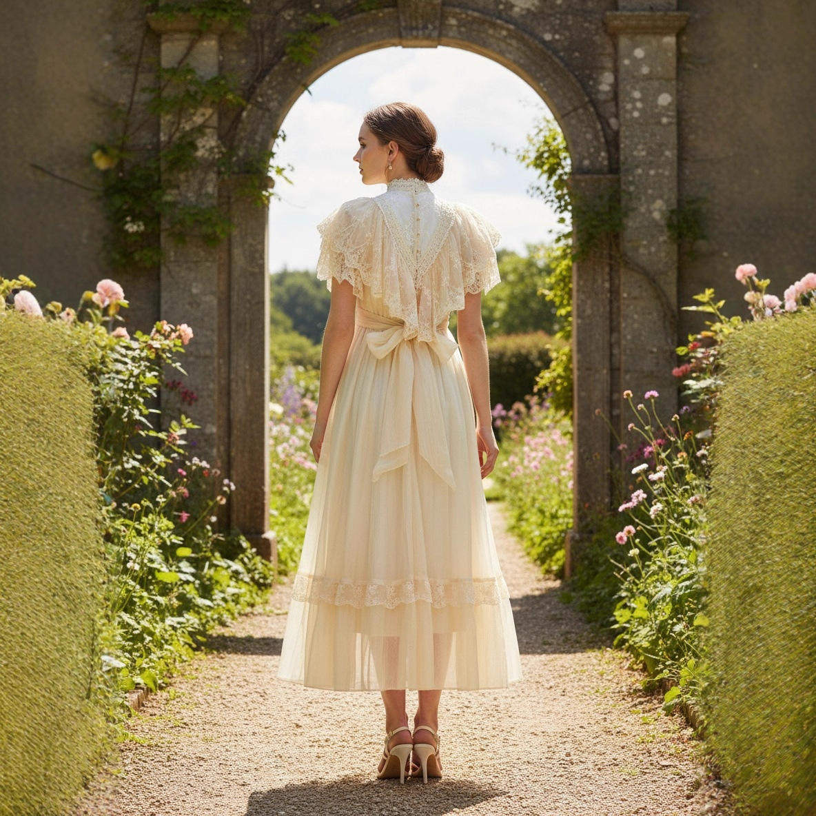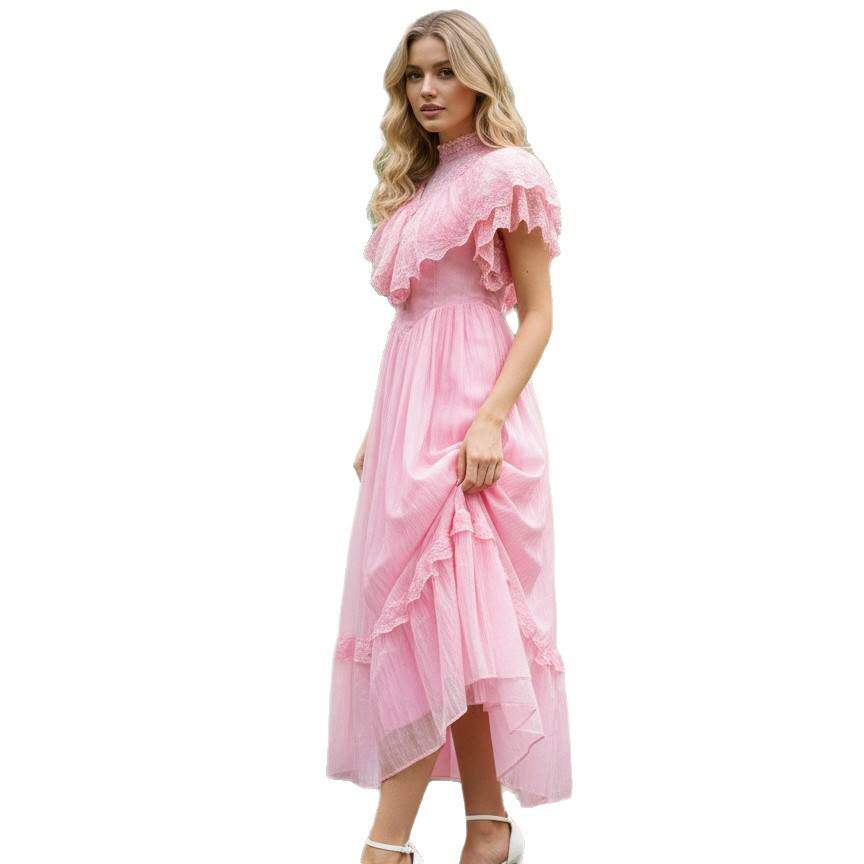 2026复古重工白色仙气飘逸连衣裙蕾丝拼接大摆裙长裙女现货