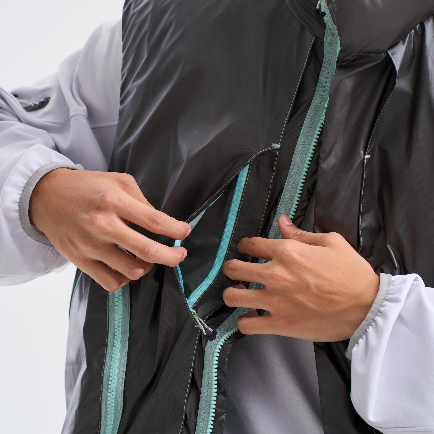 311线报网描述:拼色 亮面恒温变色 拉链口袋 立领 羽绒马甲