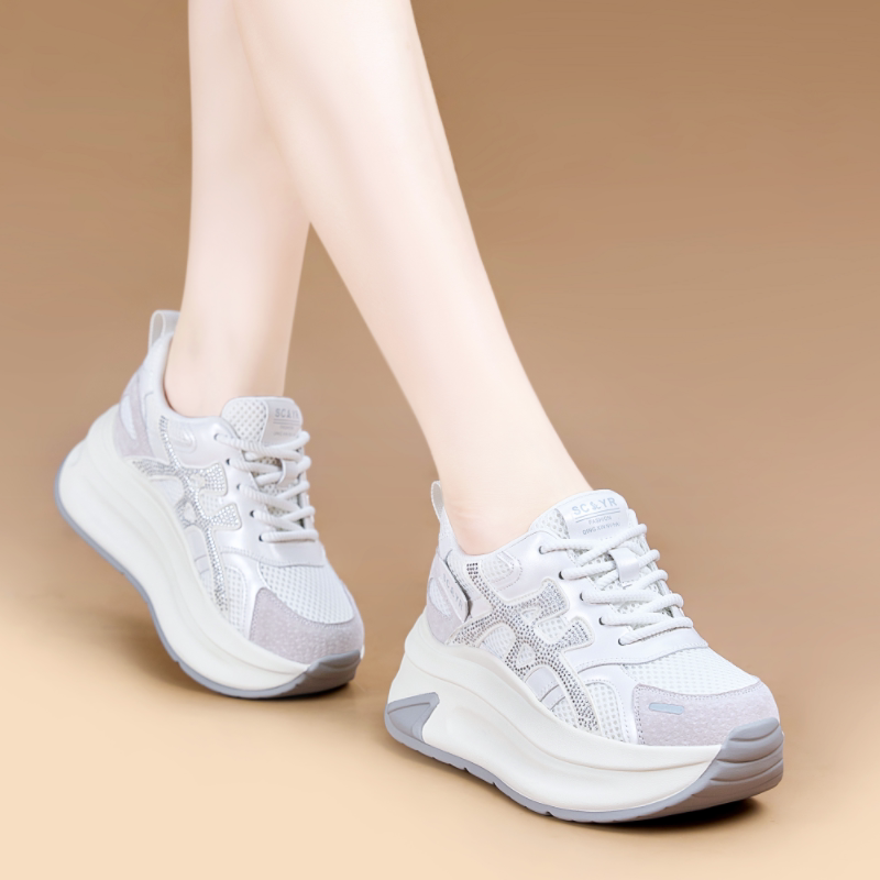 8CM隐形内增高女鞋小个子网红爆款圆头阿甘鞋真皮运动休闲小白鞋