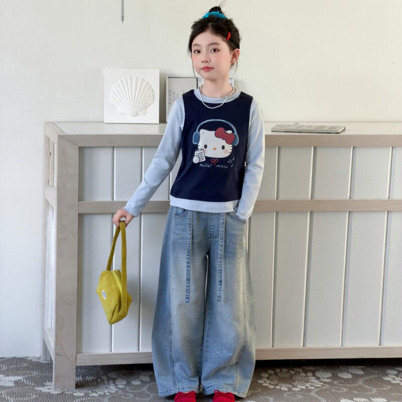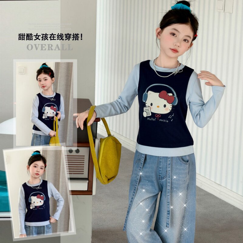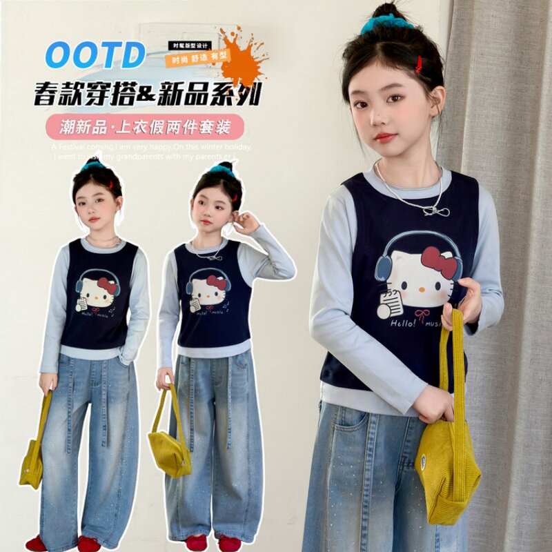 女童春装上衣巨好看薄款洋气韩版女孩假两件儿童纯棉打底长袖T恤