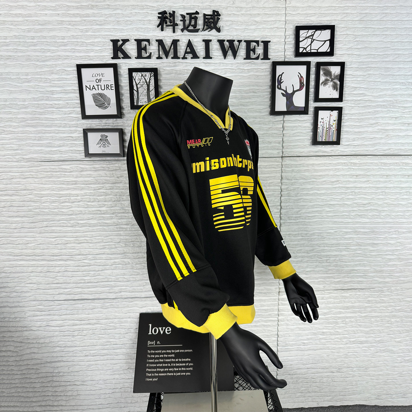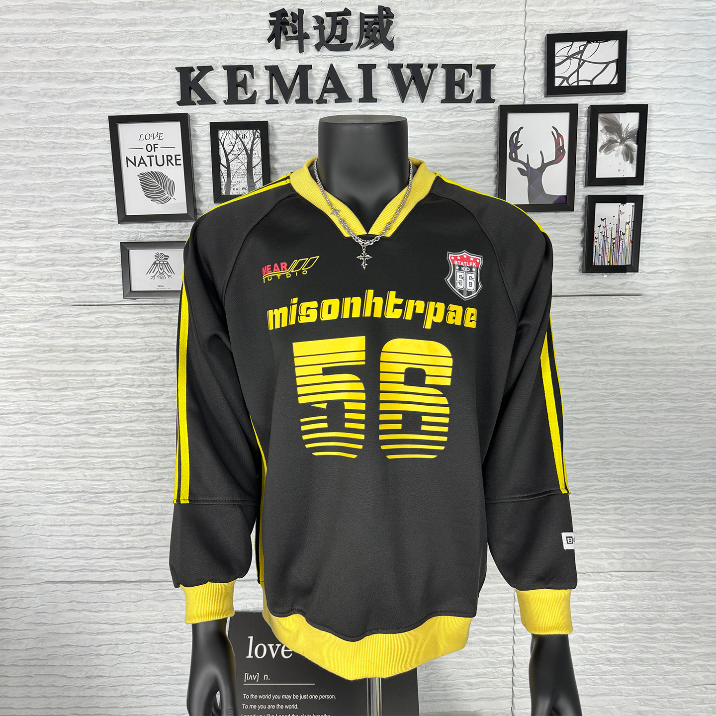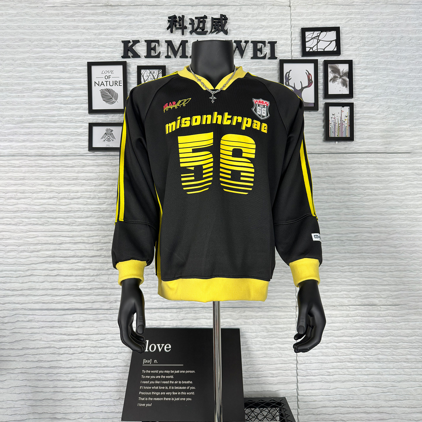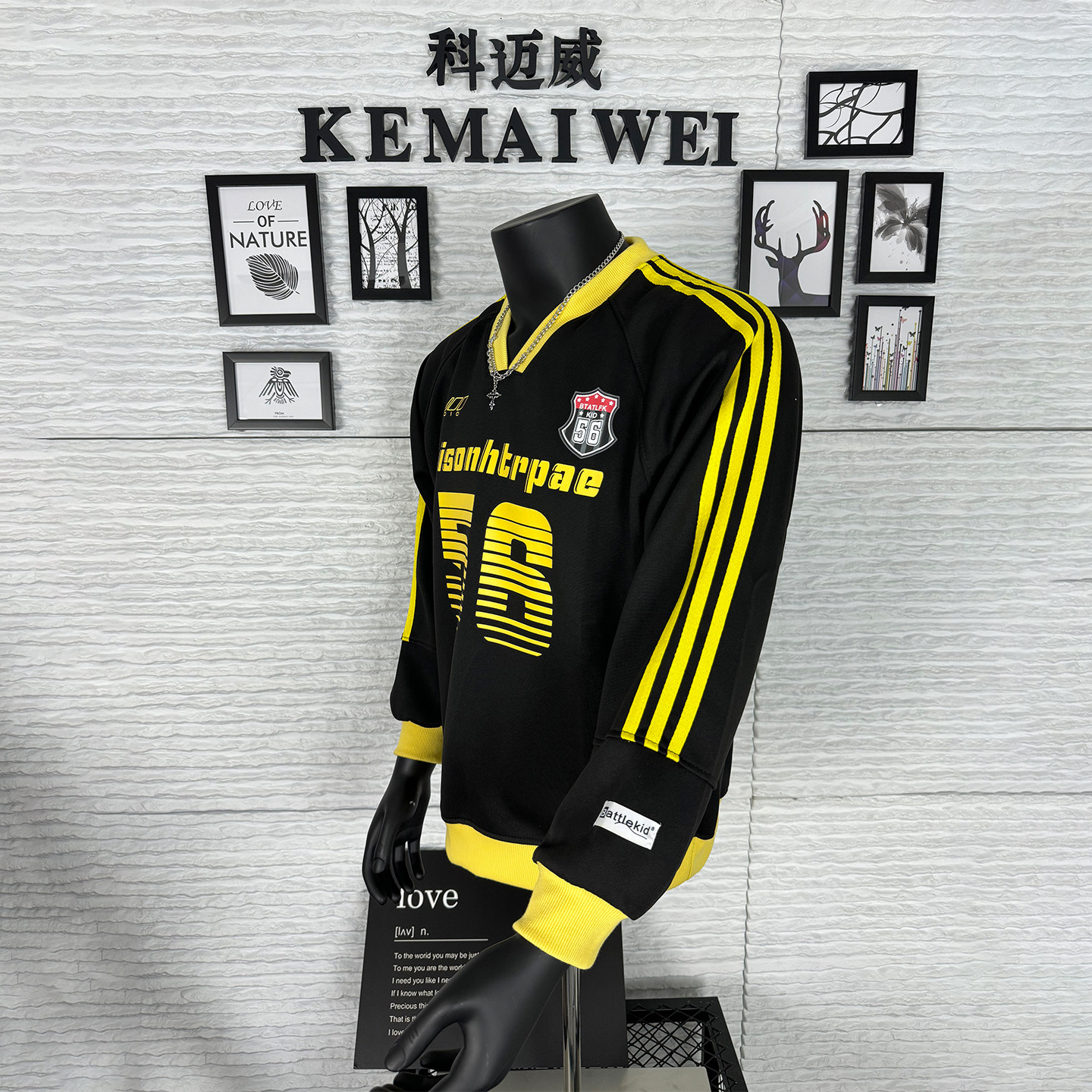 美式复古V领球衣卫衣男款设计感足球元素上衣三条杠休闲宽松外套