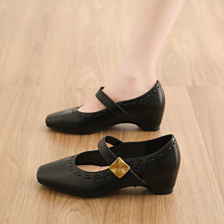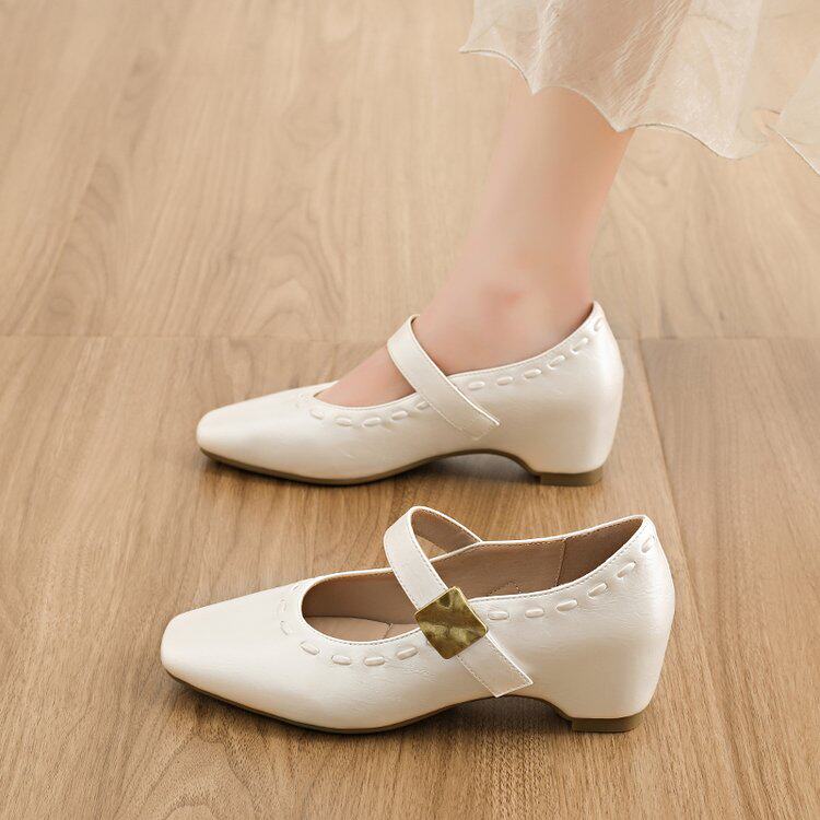 气质方头玛丽珍鞋女2026春季新款温柔内增高复古通勤百搭浅口单鞋