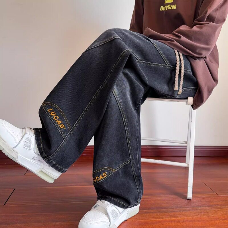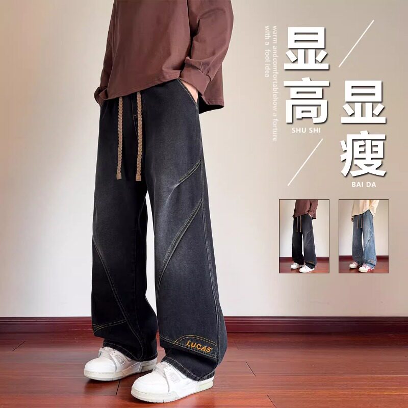 春秋款牛仔裤子男孩初中高中学生帅气直筒休闲长裤青少年大童男装