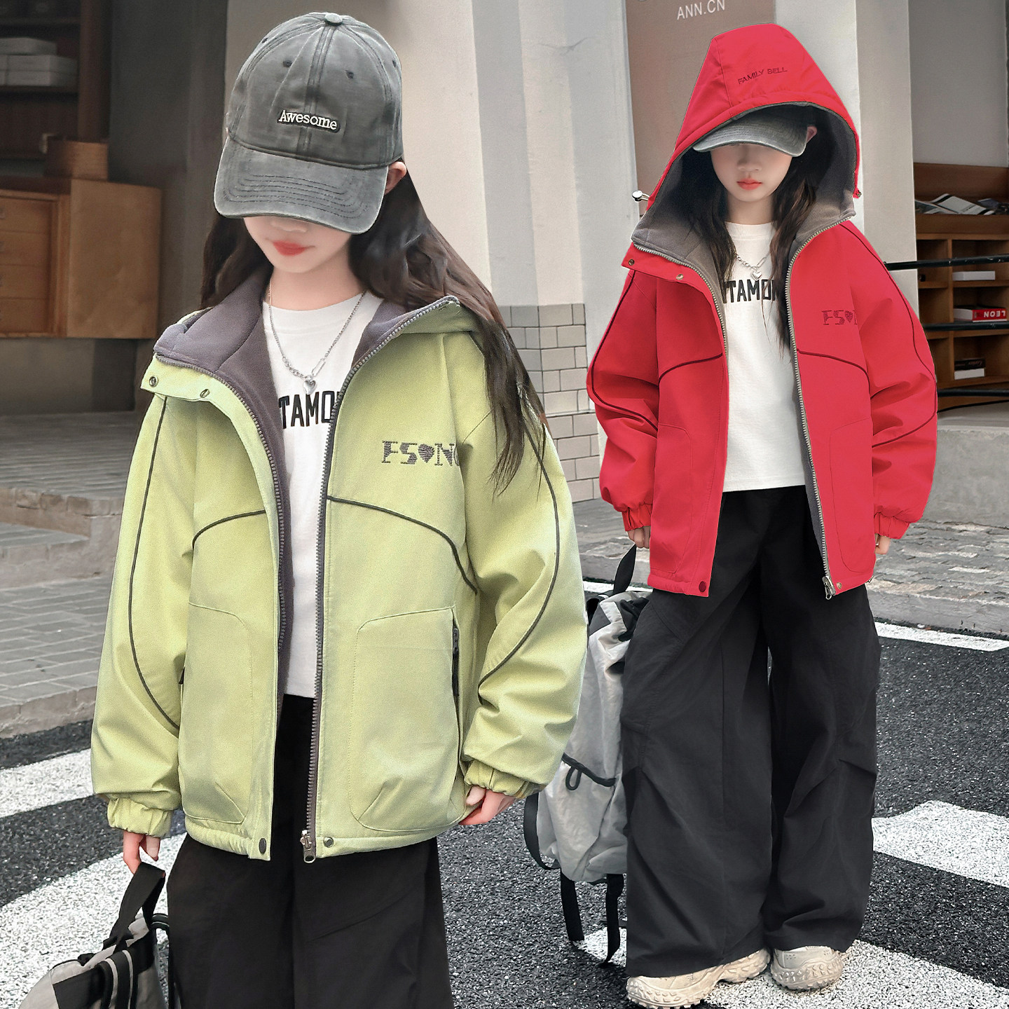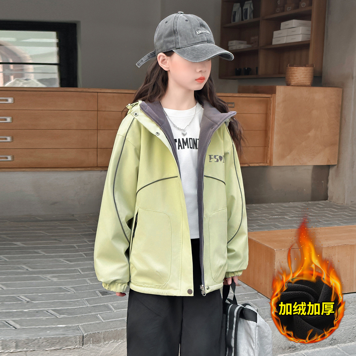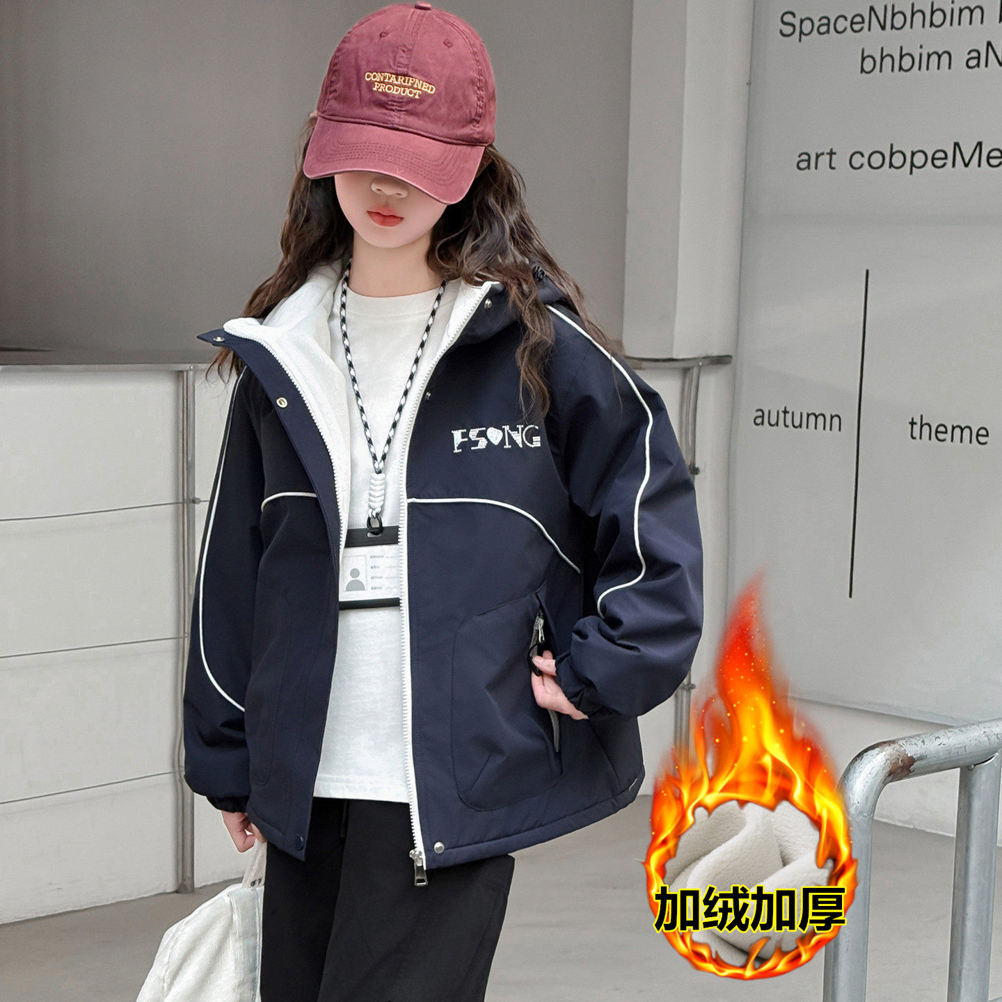 女童加绒外套秋冬2025新款洋气儿童冲锋衣中大童加厚冬季女孩上衣