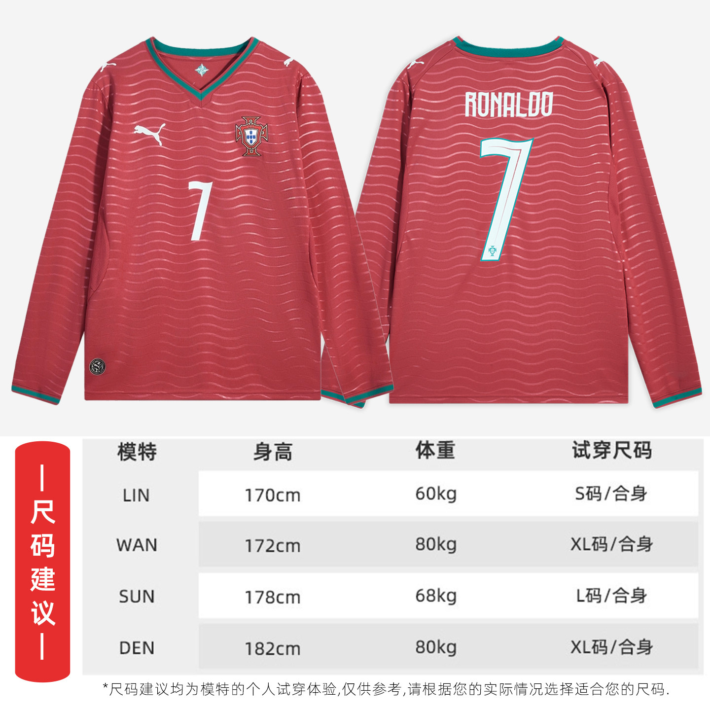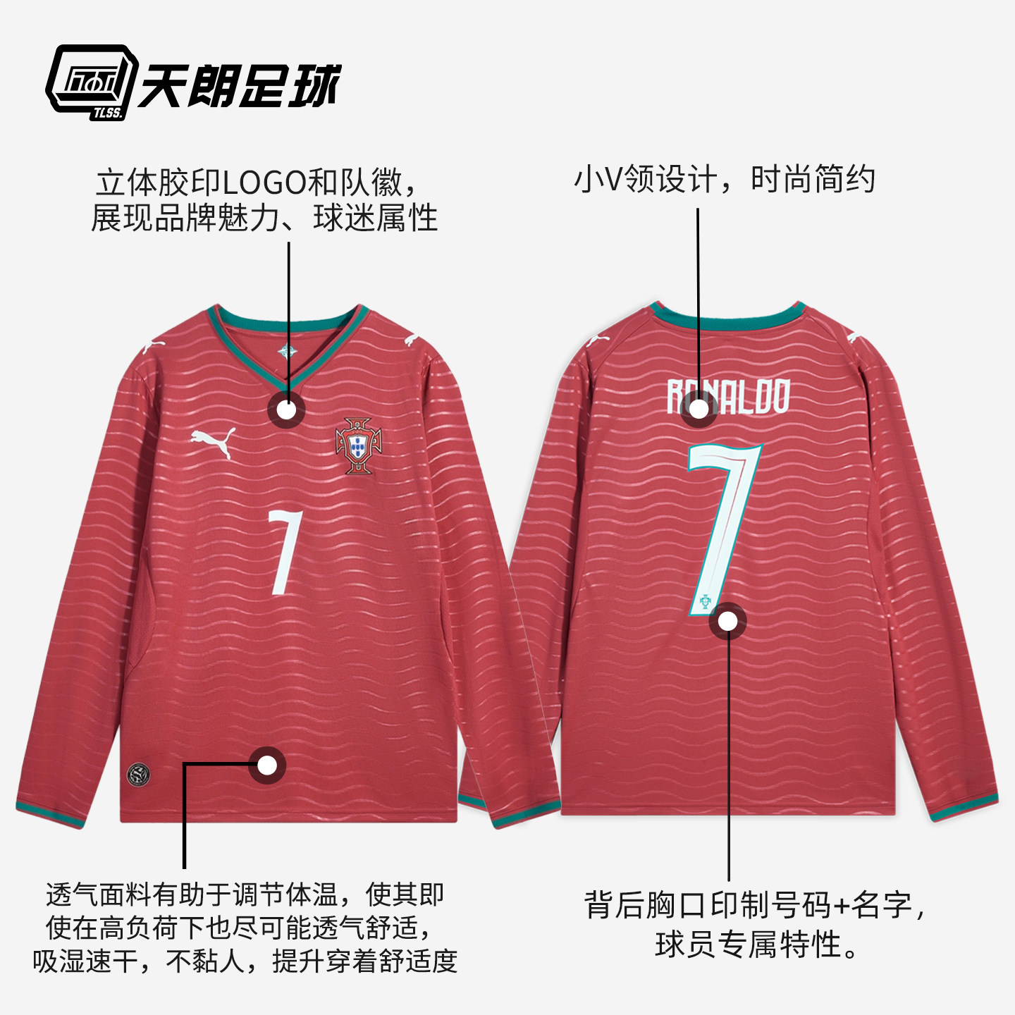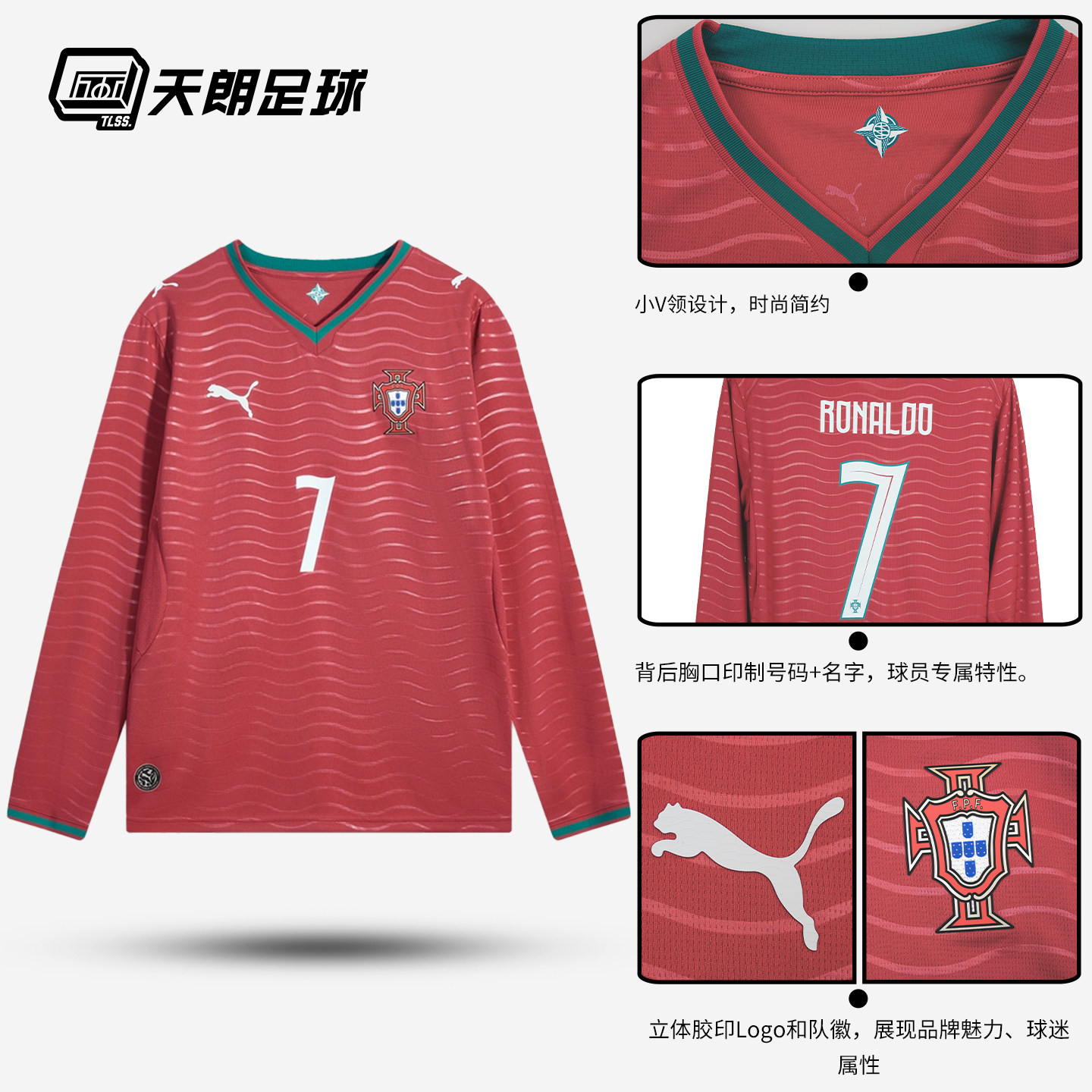 天朗足球彪马26世界杯葡萄牙主场球迷版C罗长袖足球服788142 77