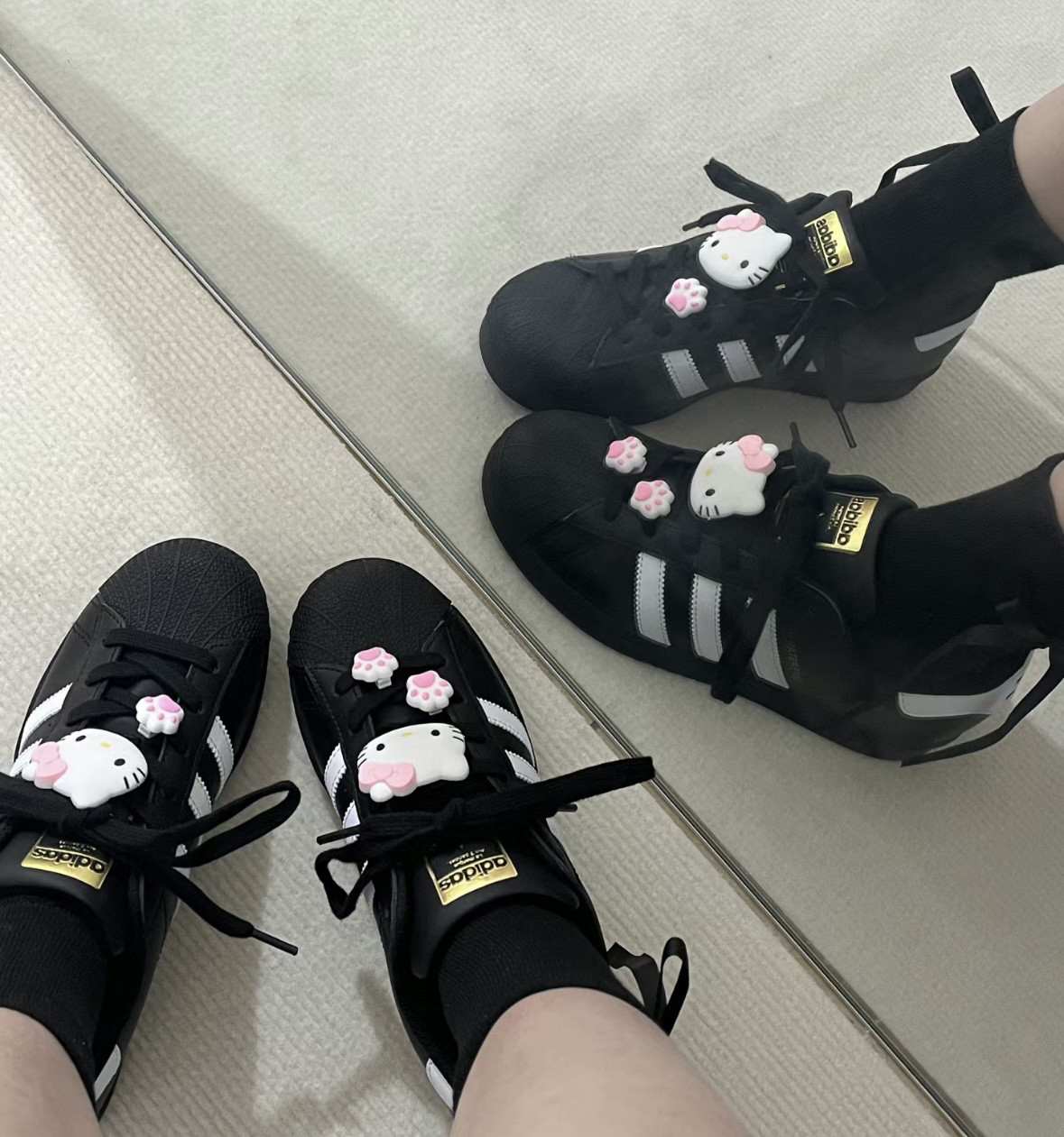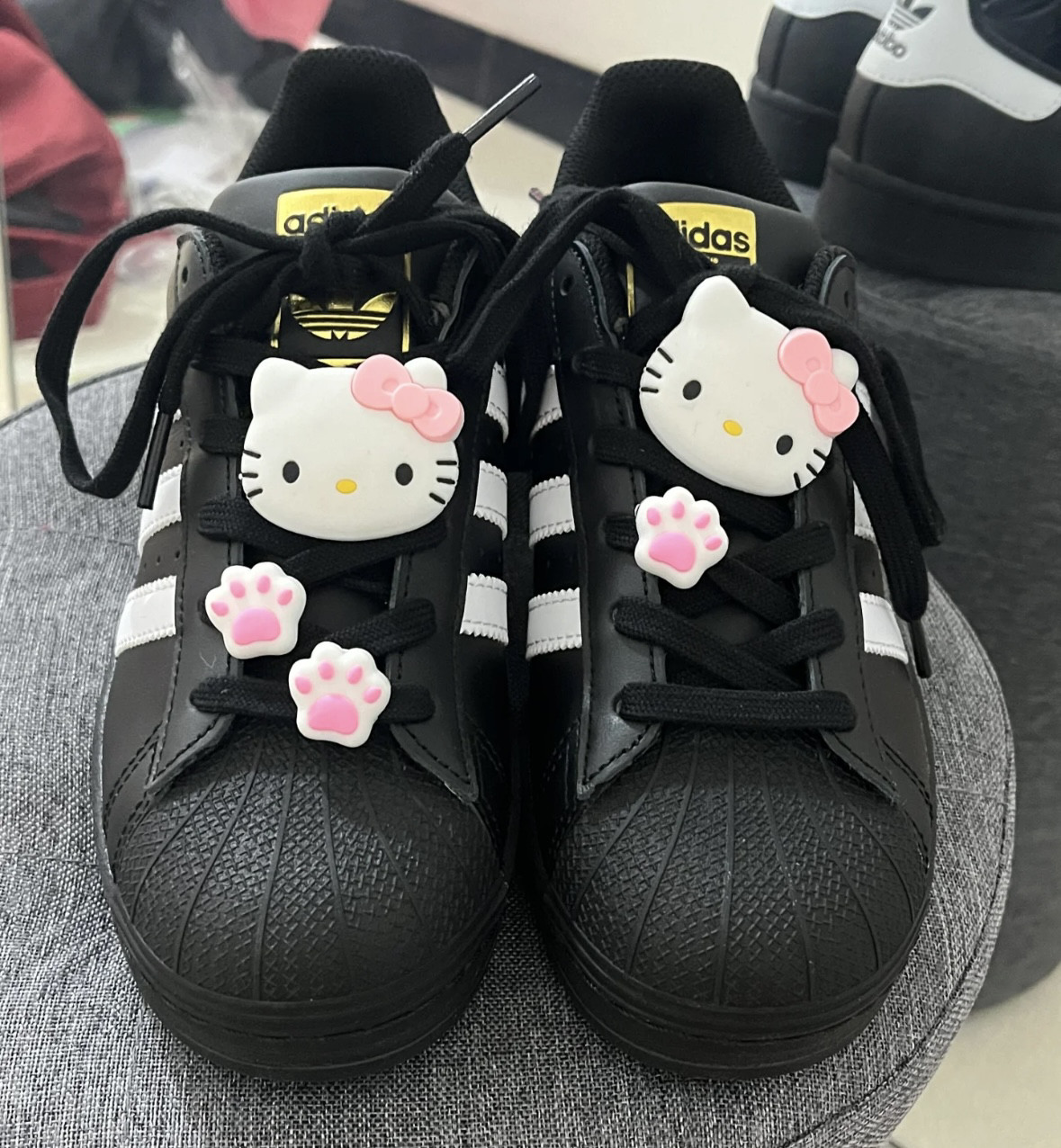 ins大号粉色kt软胶配件阿迪贝壳头黑白色鞋带扣鞋子凯蒂猫diy配饰