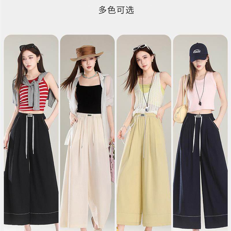 仿亚麻裙裤八分女裤夏季薄款新款休闲裤女款长款阔腿裤子2026