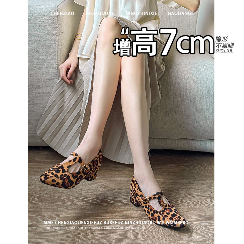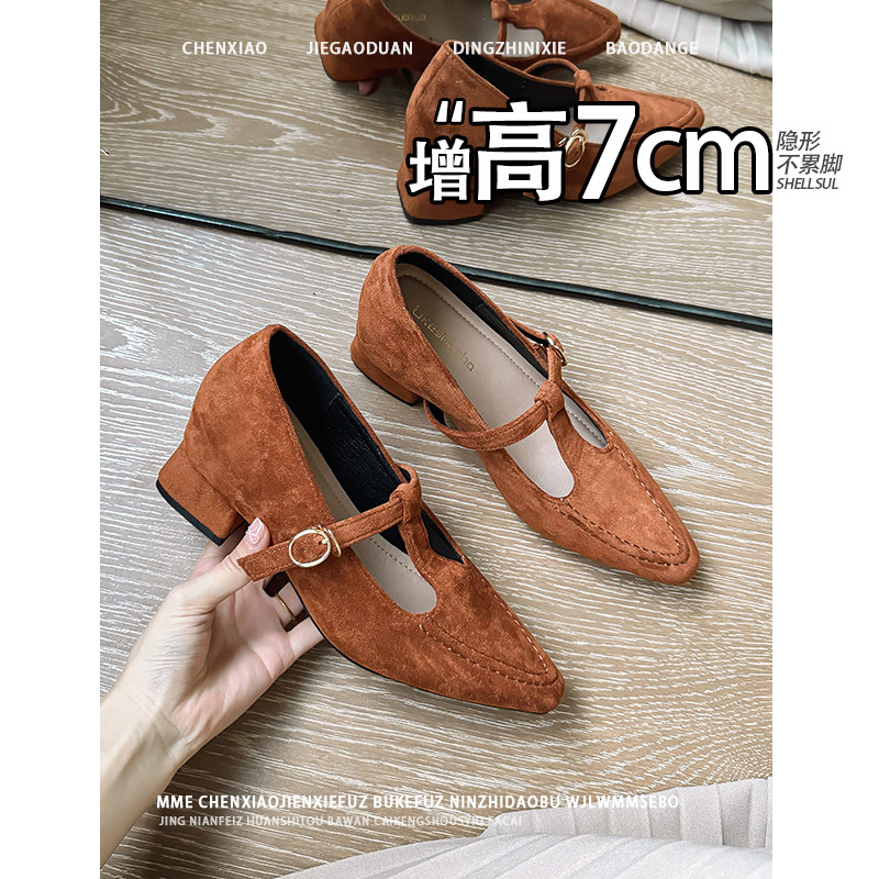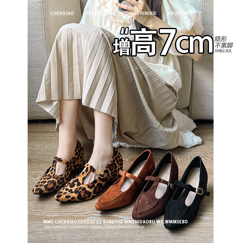 不累脚!隐形内增高7CM法式真皮气质玛丽珍2026春夏季新款单鞋女