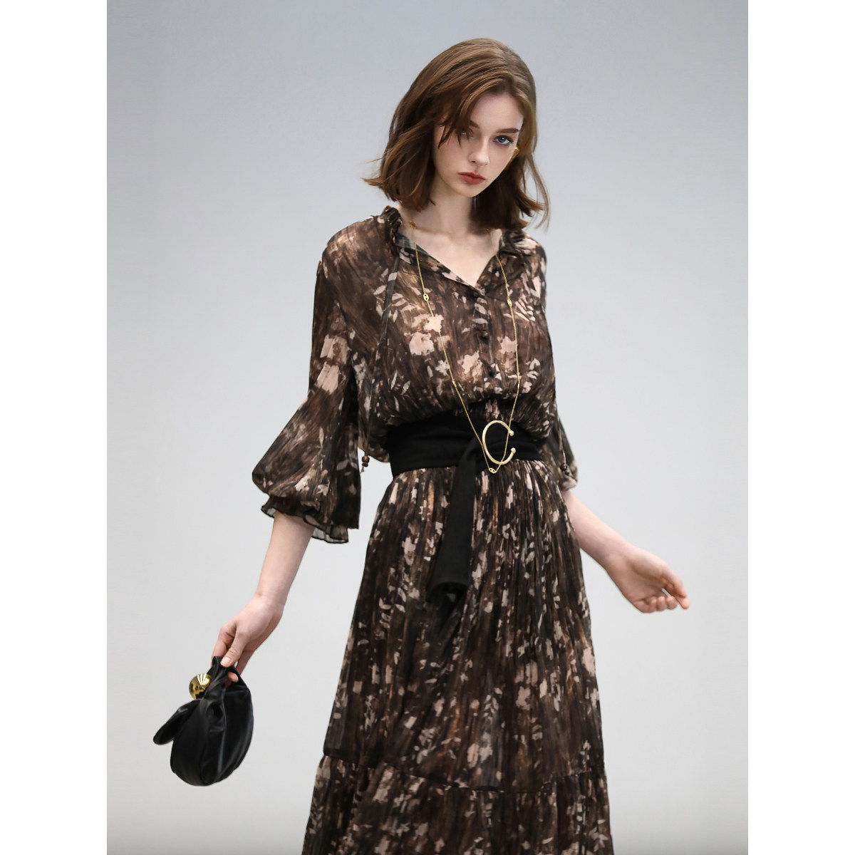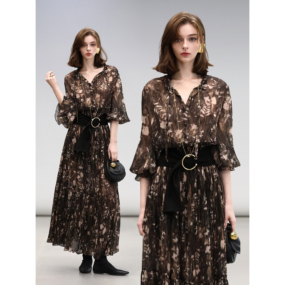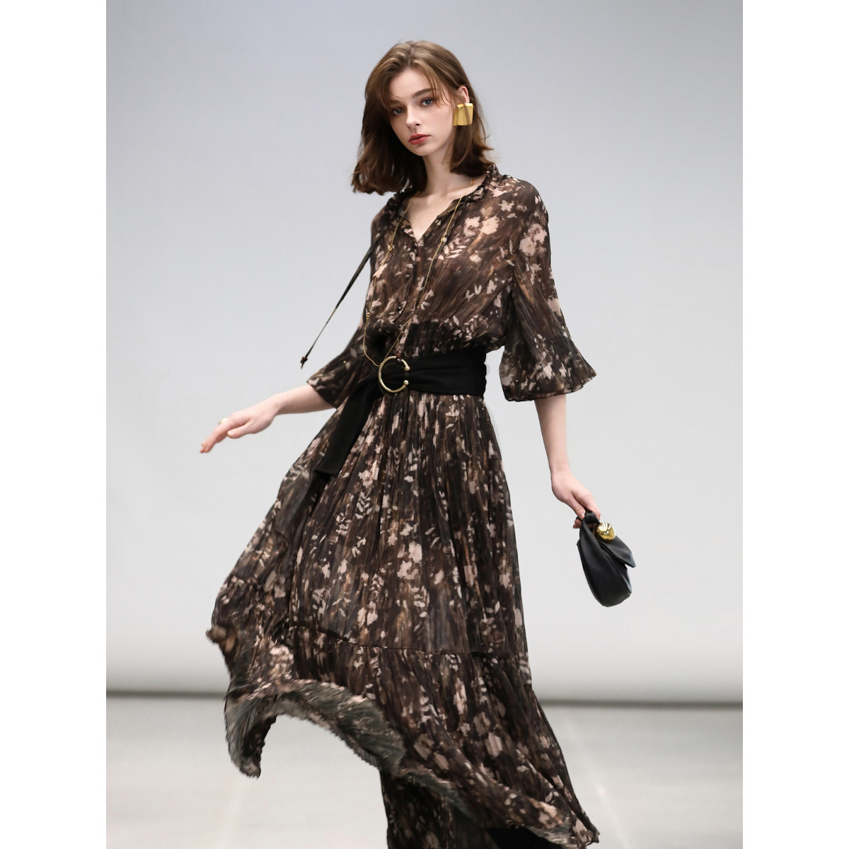 311线报网描述:金丝压褶连衣裙
