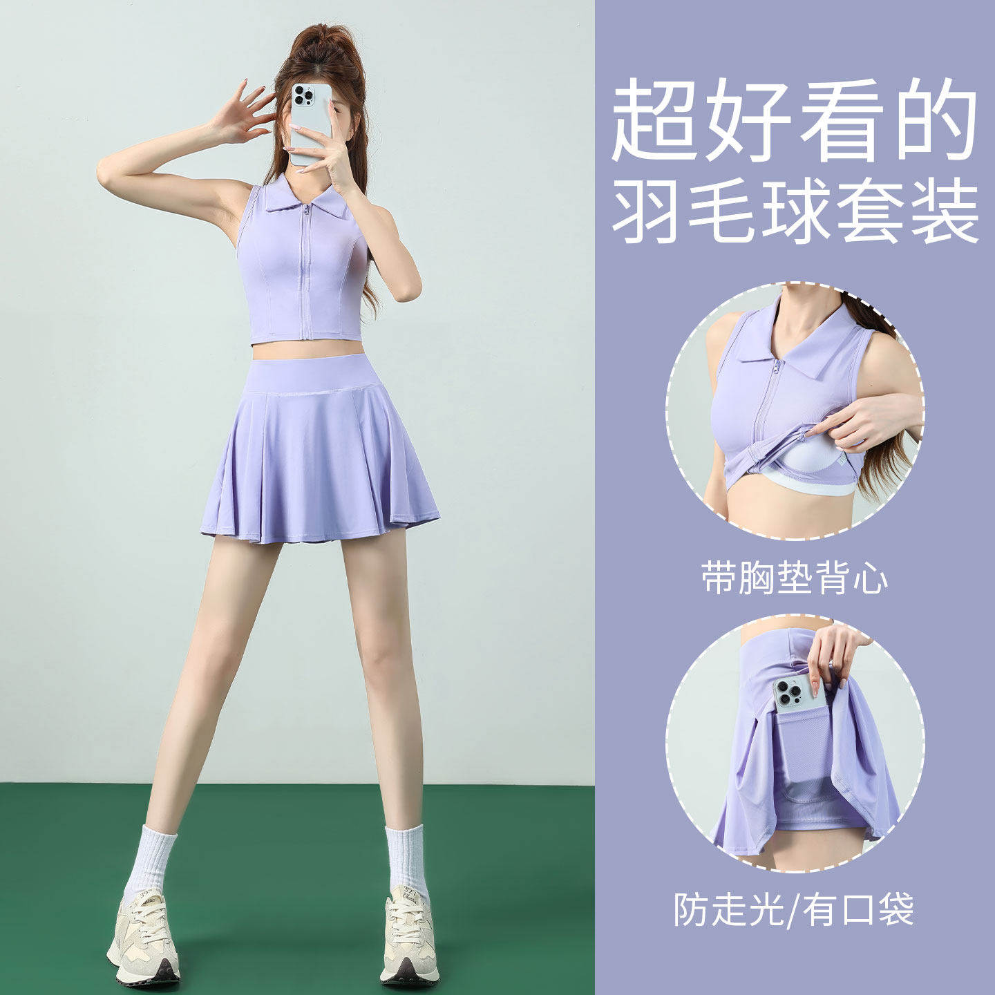 羽毛球服套装女夏季2026新款polo衫健身衣瑜伽速干跑步短裙网球服