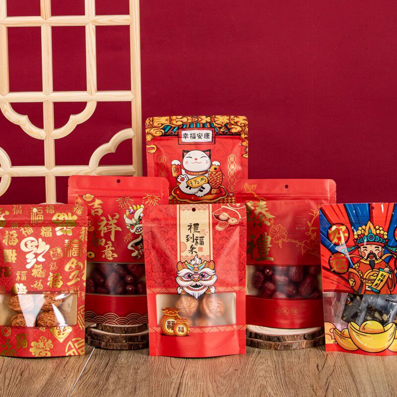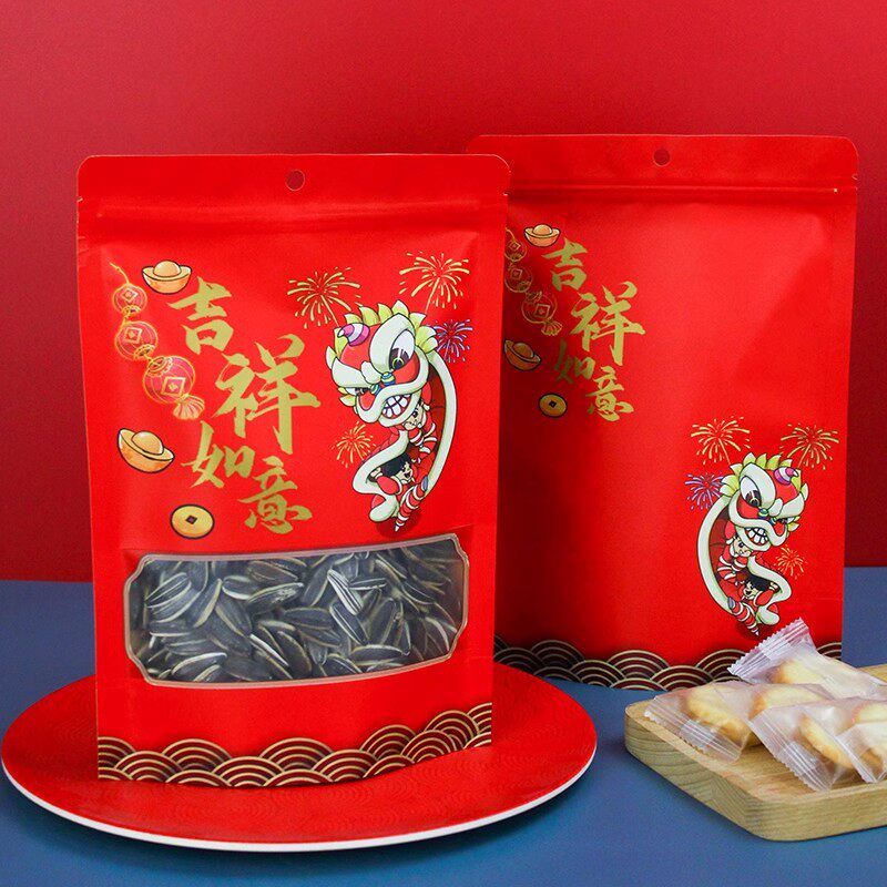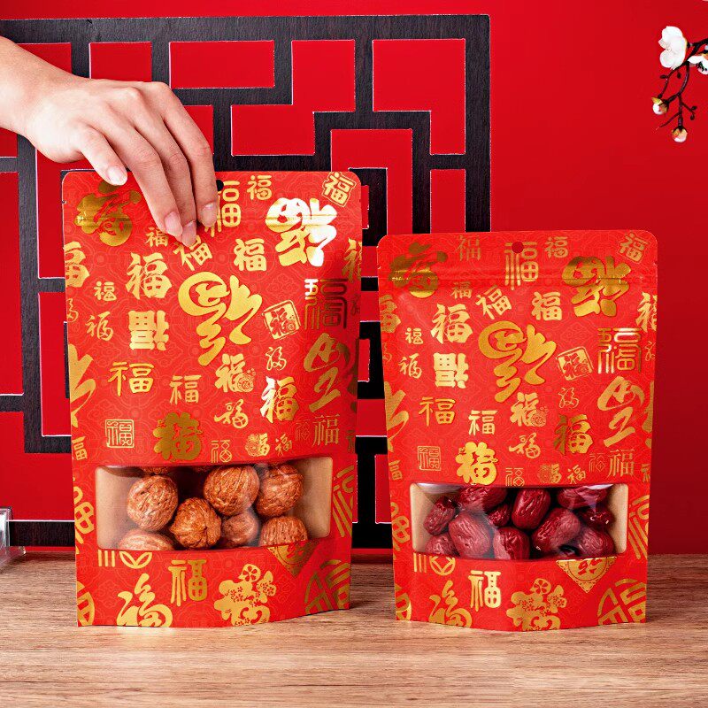 年货花生瓜子食品包装袋牛皮纸红色零食自封袋密封坚果干果礼品袋