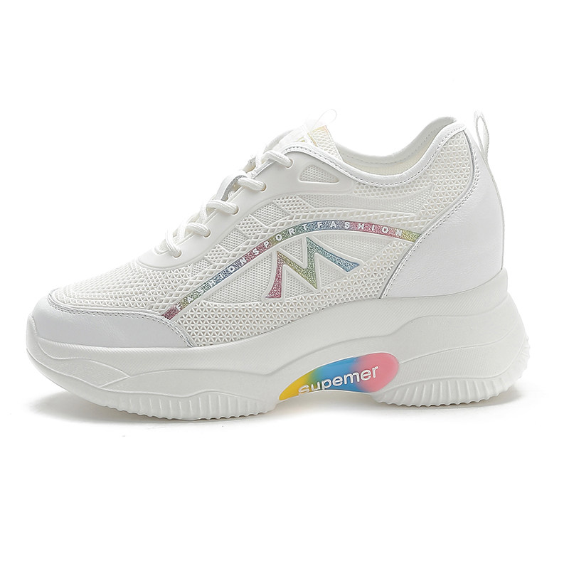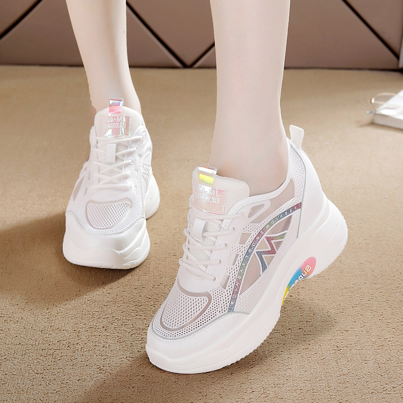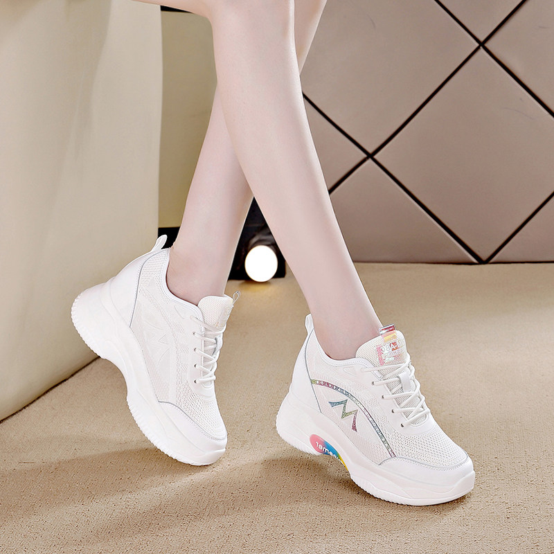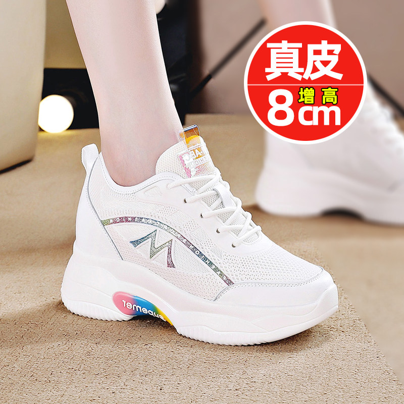 夏季真皮内增高小白鞋网面透气8公分夏天女鞋显瘦运动鞋小个子潮
