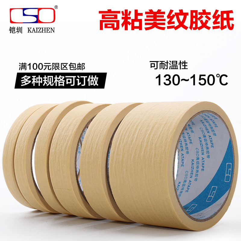 519高粘中温皱纹胶带 耐高温美纹纸胶带 喷漆烤漆胶纸150度 12米