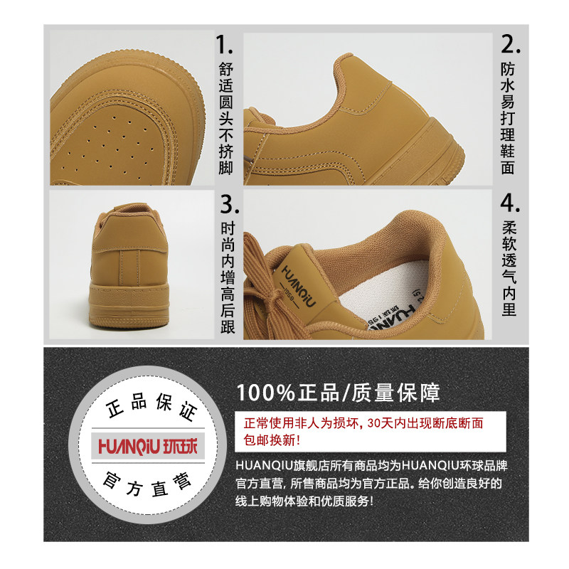 环球小麦色板鞋男款2026新款春秋百搭增高运动休闲鞋厚底男士板鞋