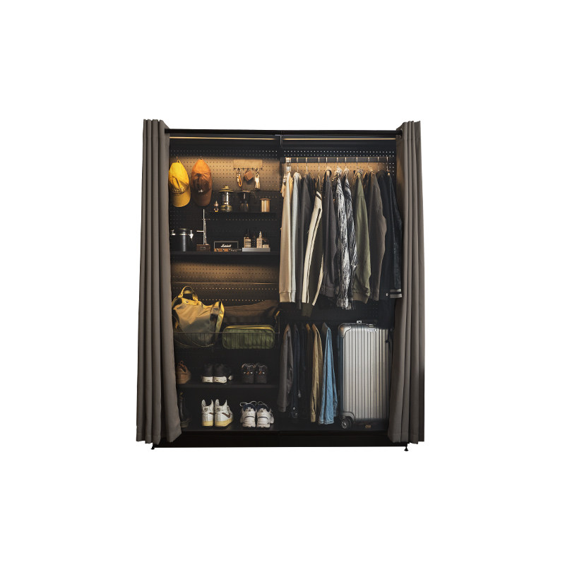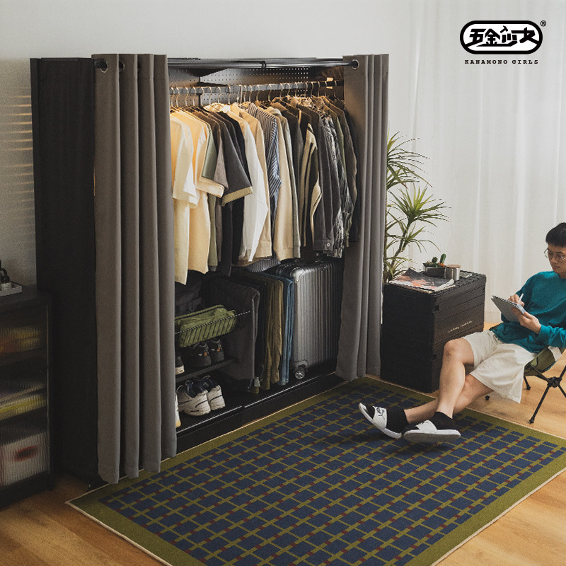 五金少女洞洞板简易衣柜家用卧室金属组装铁艺开放式带防尘帘衣橱