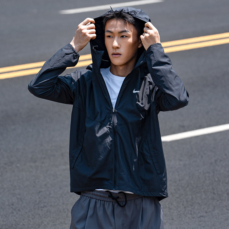 NIKE耐克跑步服男款春季健身上下装运动套装黑色裤子长裤夹克外套