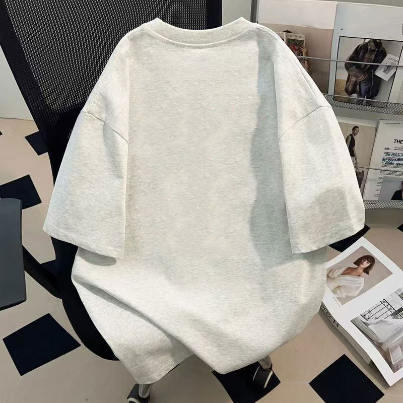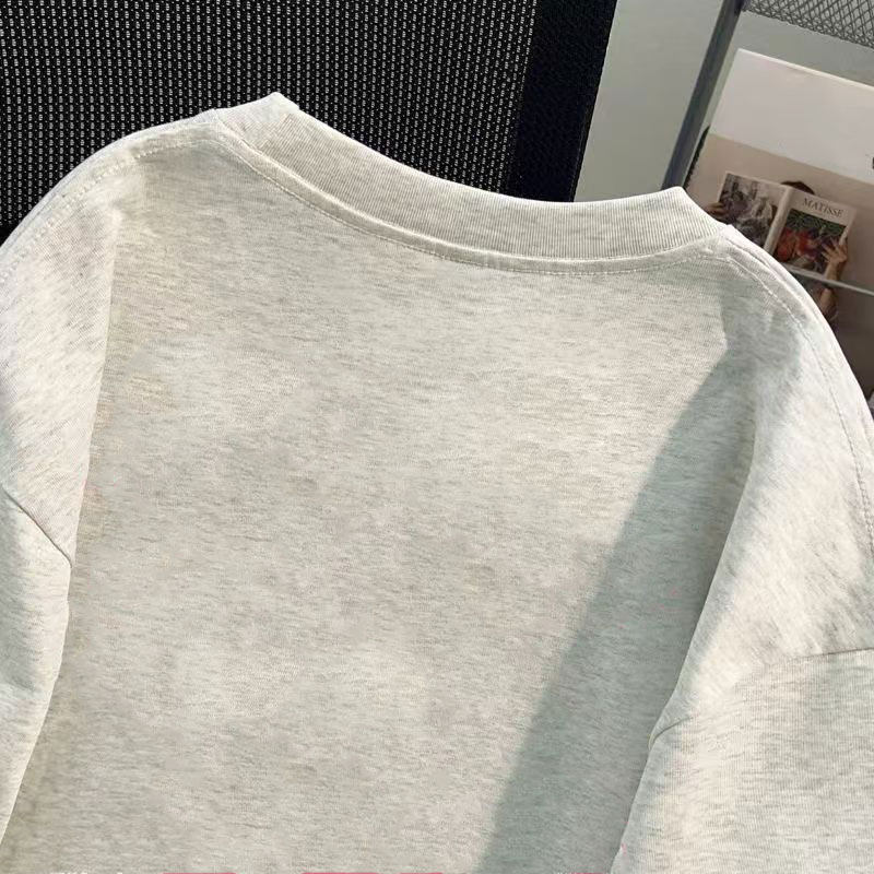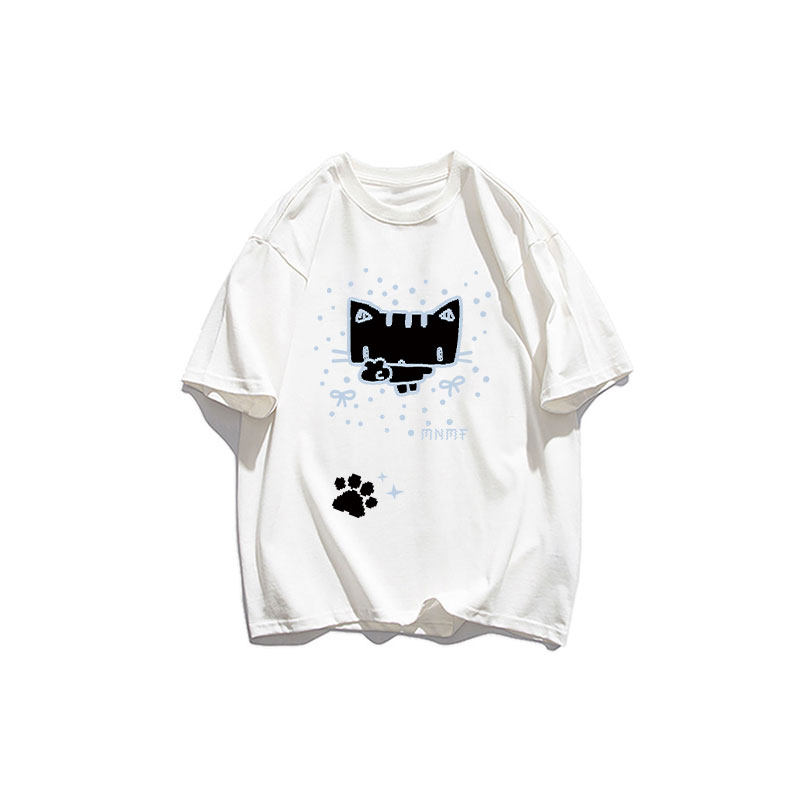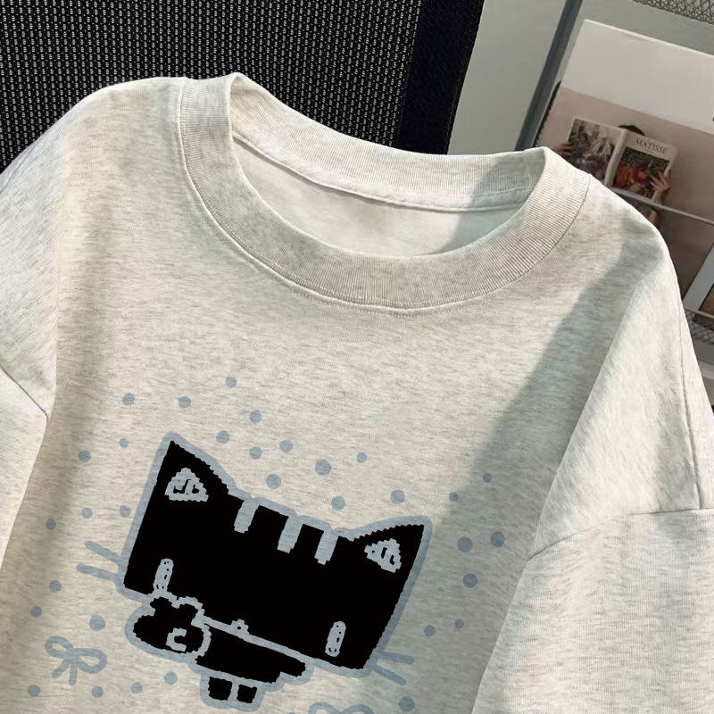 白灰色男女童短袖t恤纯棉潮牌复古猫咪印花夏季中大童宽松上衣服