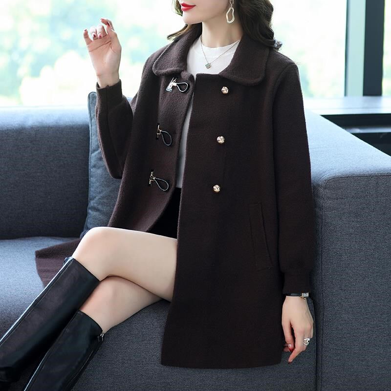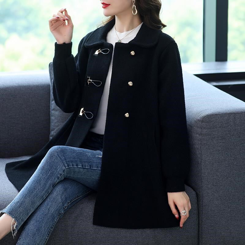 年轻妈妈秋冬毛呢外套胖女人加大码高档中长款双面羊绒大衣A字版