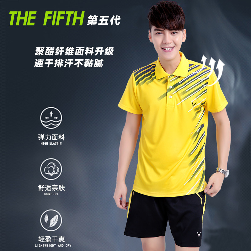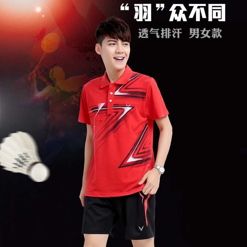 速干羽毛球服套装女网球乒乓球衣翻领男款夏短袖运动队服定制新款