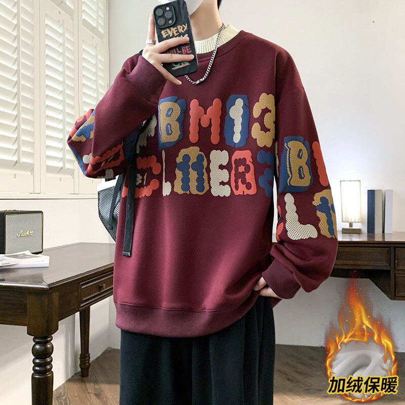 潮牌半高领卫衣男生秋冬季青少年潮流帅气加绒保暖长袖t恤上衣服