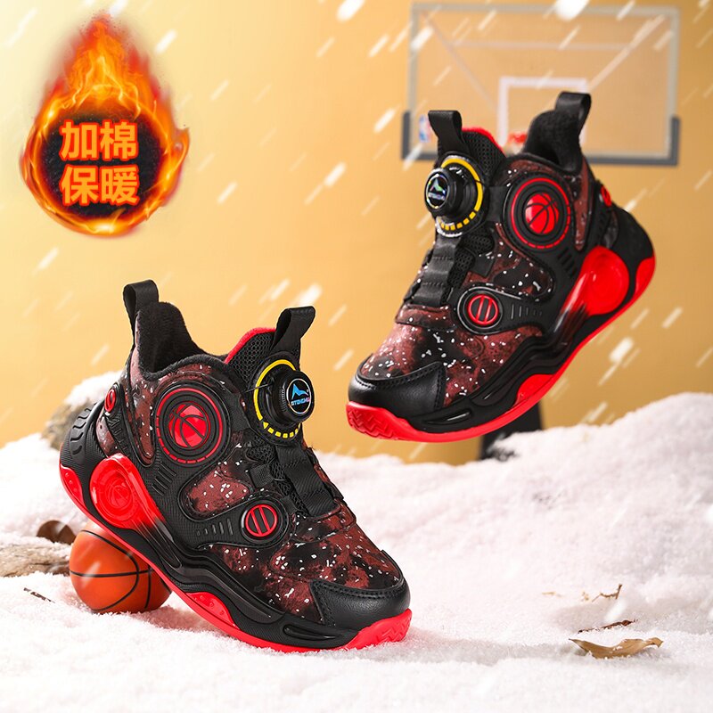 阿童木童鞋儿童运动鞋男童篮球鞋冬季加绒保暖女童鞋子皮面防水潮