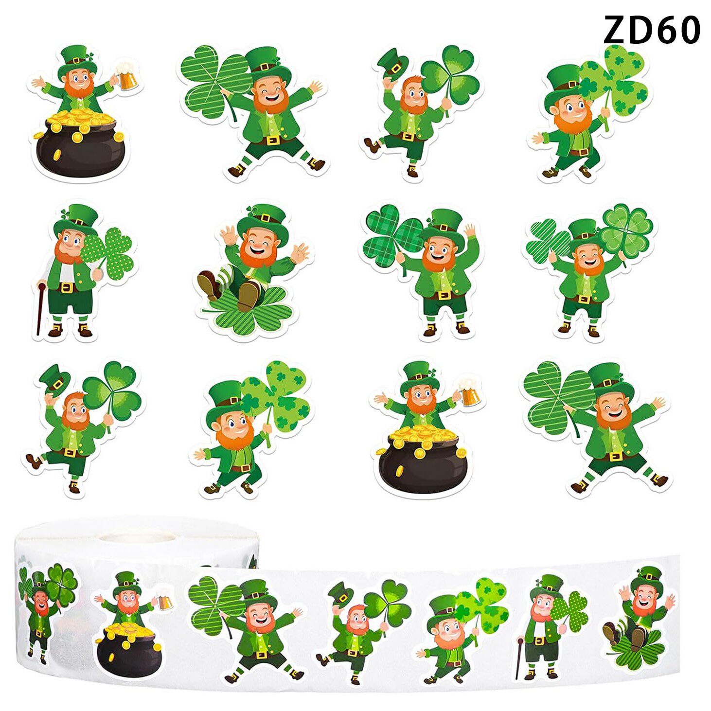 500贴一卷圣帕特里克节贴纸卷卡通精灵三叶草信封装饰节日贴纸