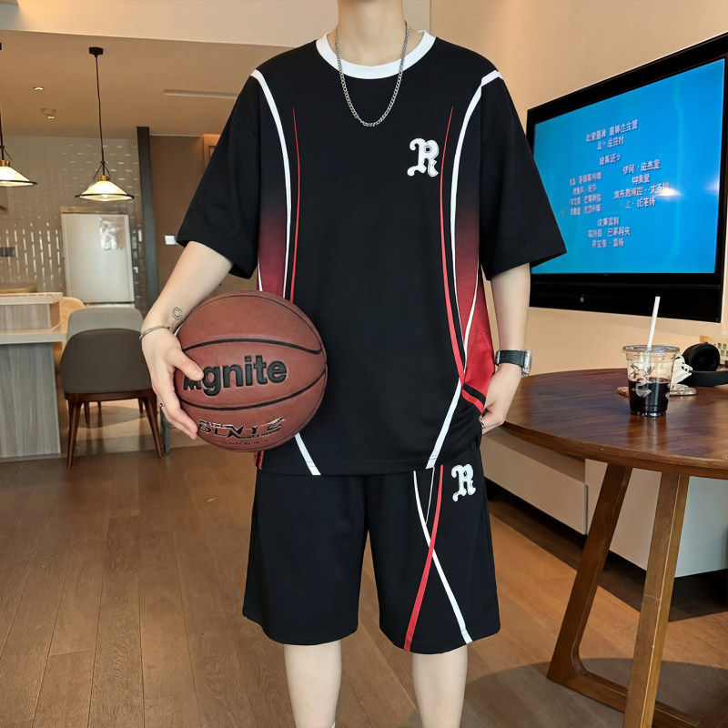夏季胖男童运动套装大童男装速干短袖t恤短裤初中学生篮球两件套