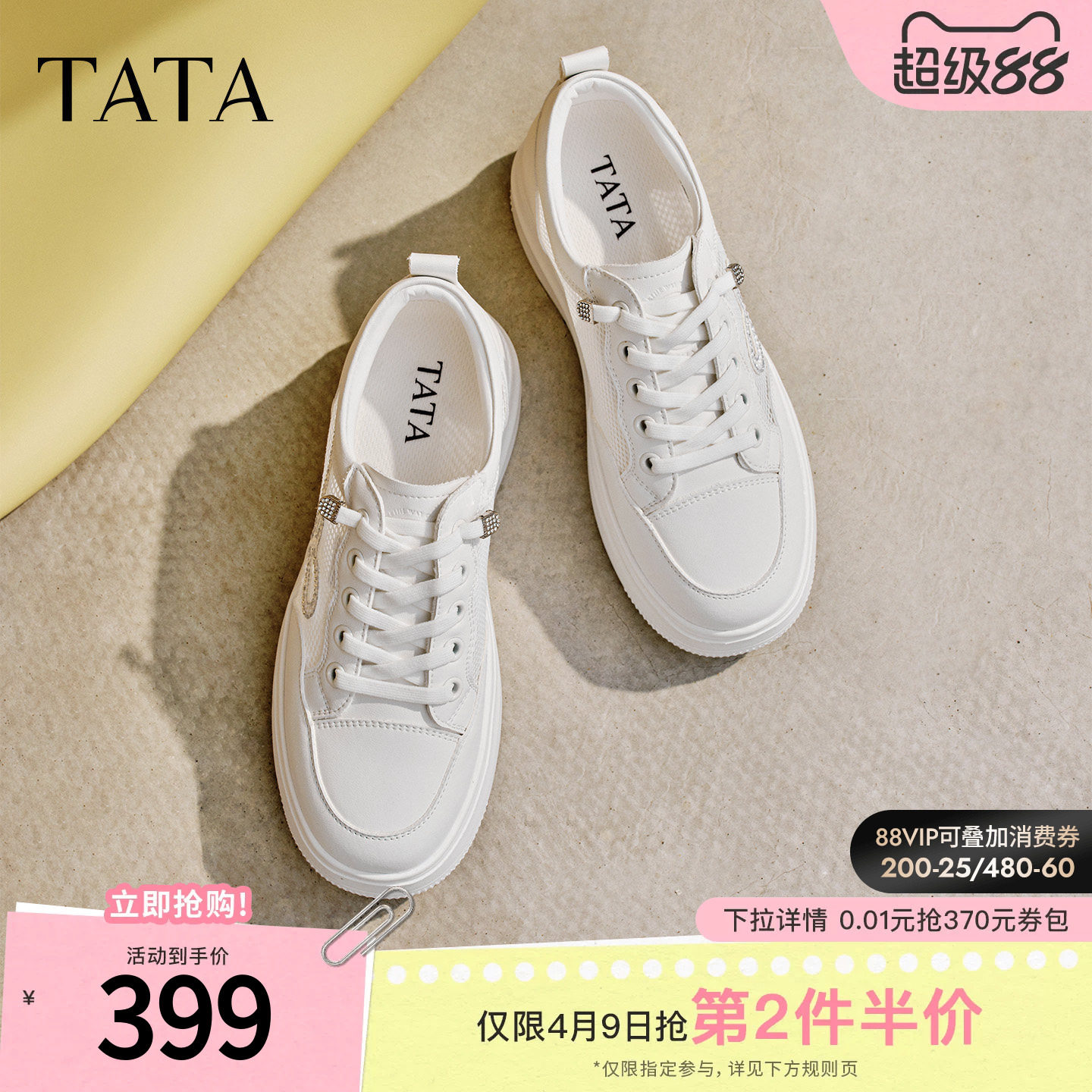 TATA他她女鞋夏季新款透气板鞋时尚休闲鞋厚底网面小白鞋WJN31BM6