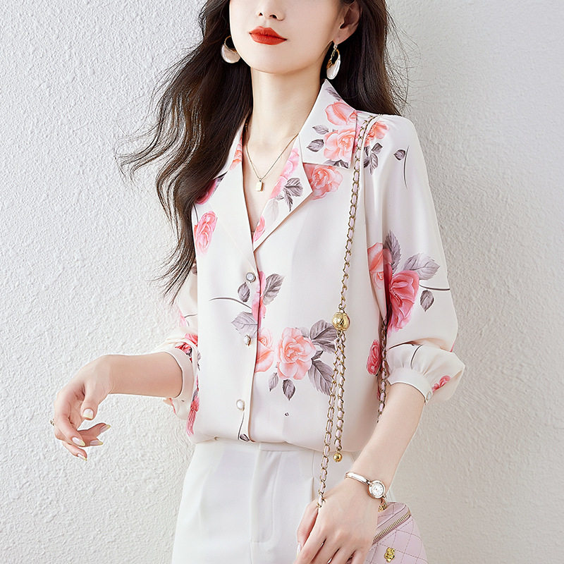 新款 法式气质印花衬衫女夏款2024衬衣女款特别设计感上衣衬衫袖