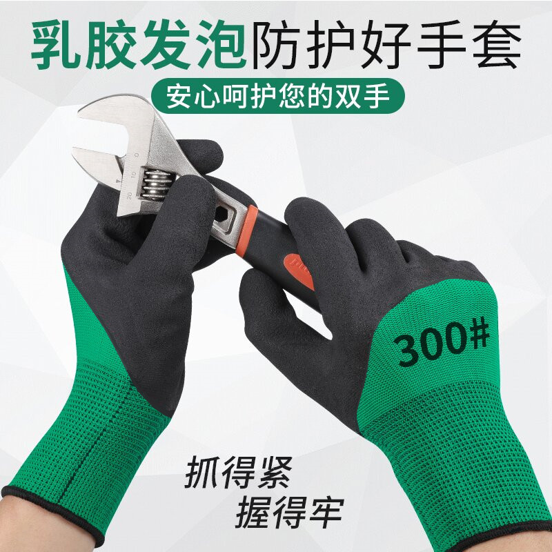 正品12双发泡王耐磨浸胶防护乳胶透气王防滑挂胶带胶工作劳保手套