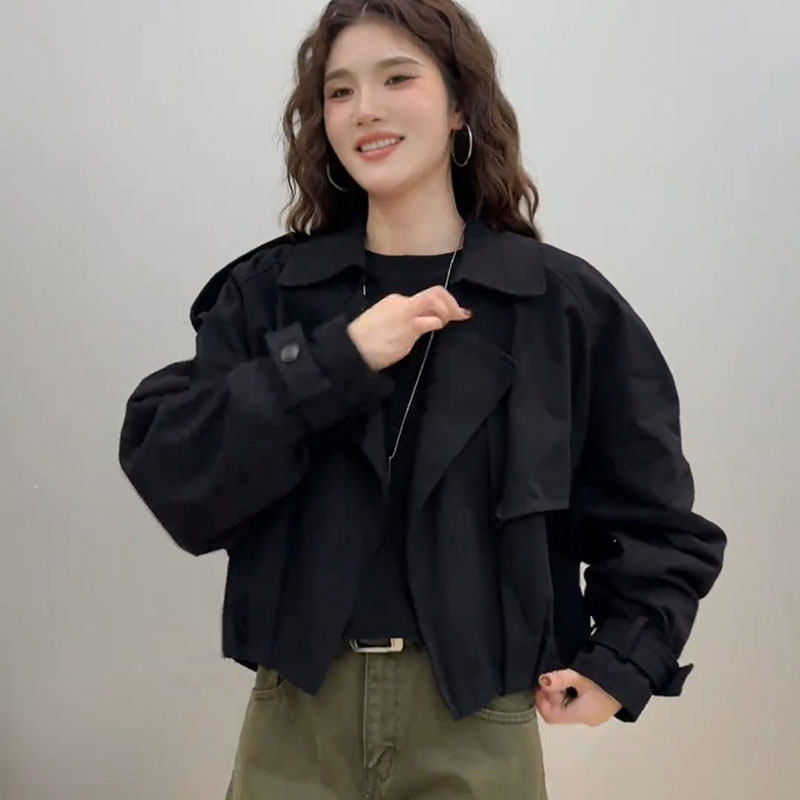 韩国东大门春装2026新款大翻领气质风衣女高级感时尚小个子短外套