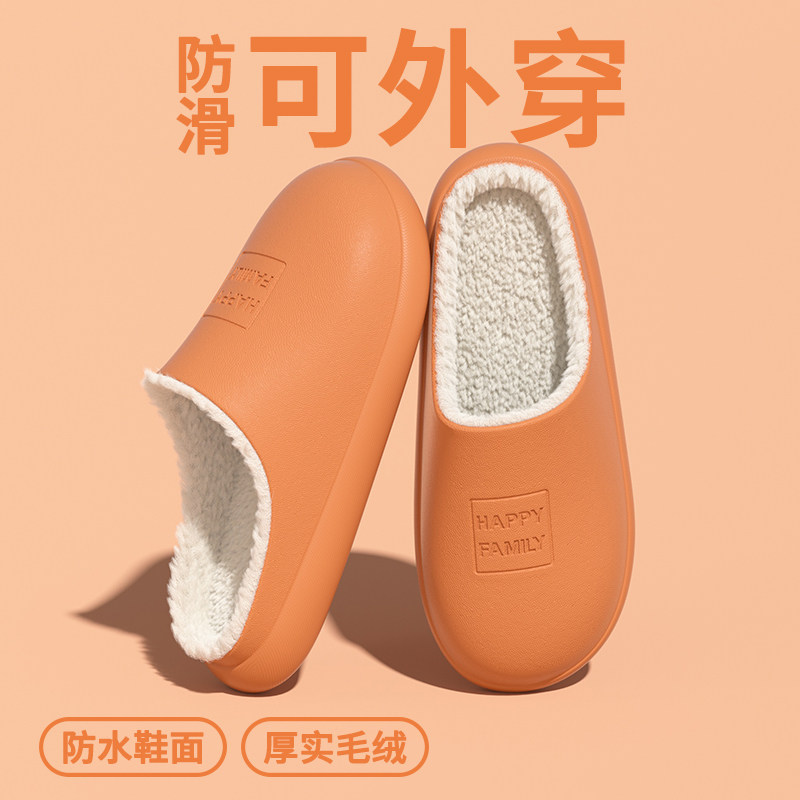 防水棉拖鞋女2026冬季新款居家室内加绒加厚防滑保暖情侣棉鞋女款