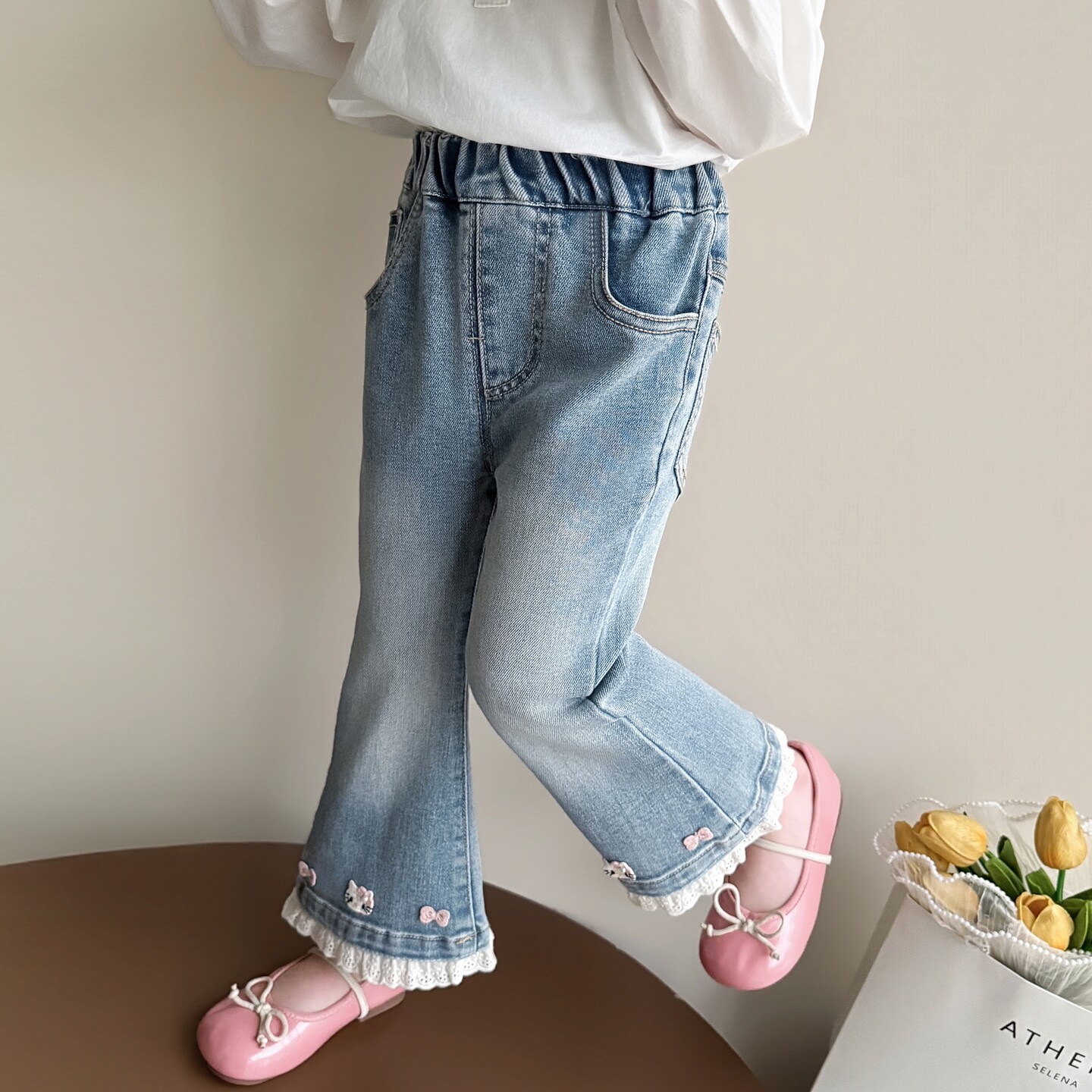 女童裤子春秋2026新款儿童洋气女孩宝宝春季牛仔裤春装洋气喇叭裤