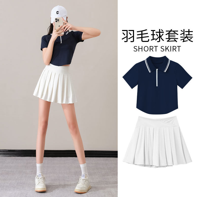 羽毛球运动套装女夏季新款学院风Polo衫高尔夫服装冰丝网球裙短袖