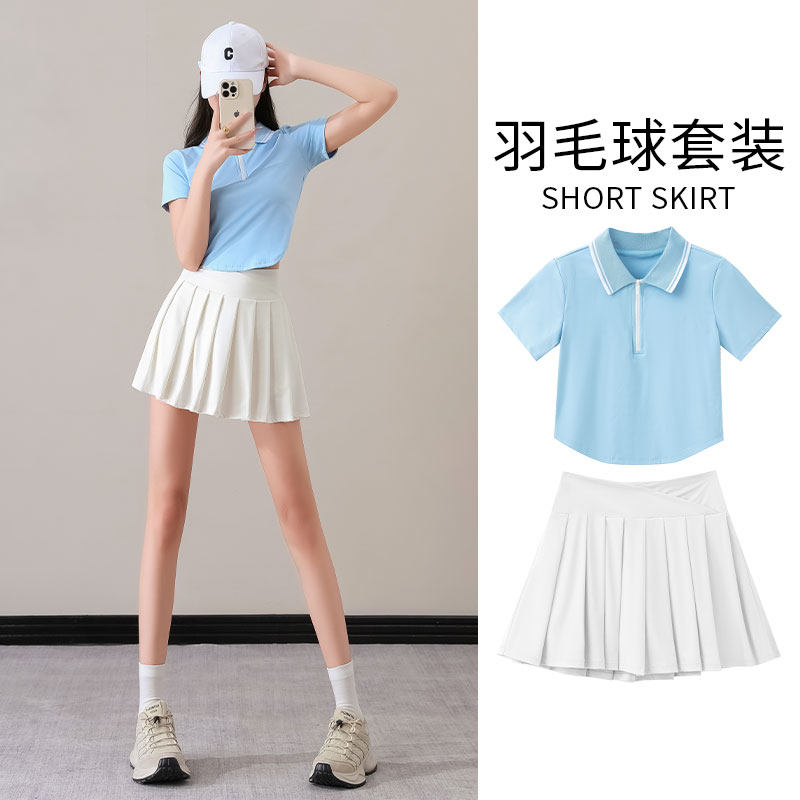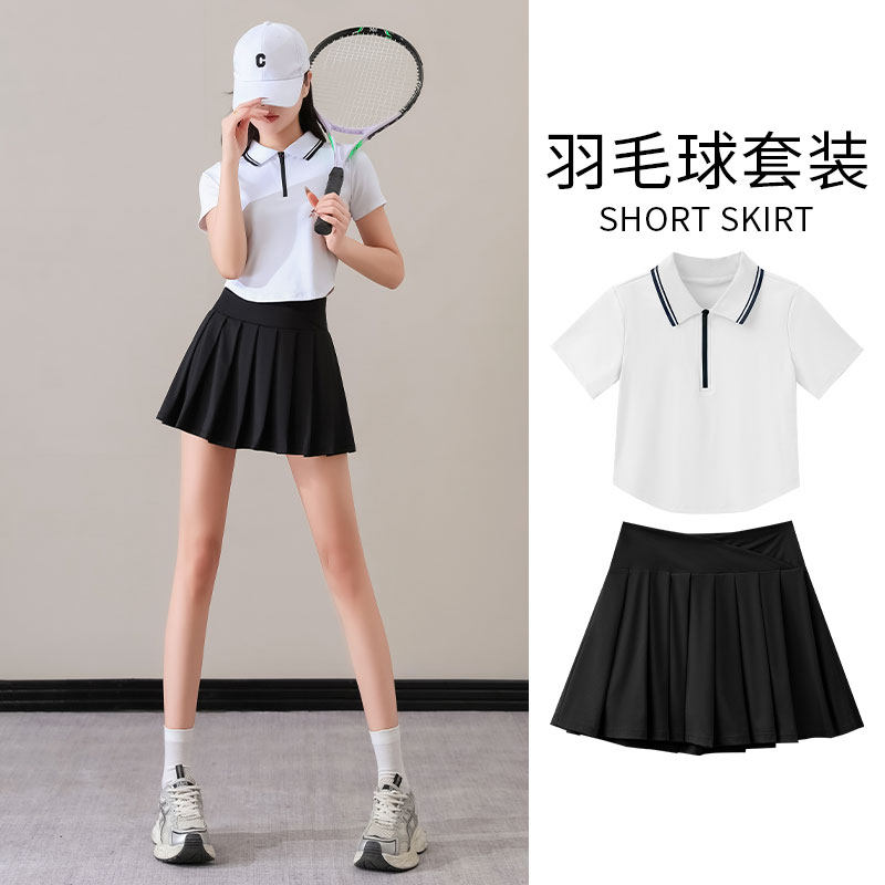 羽毛球服新款女套装2025两件套装夏网球短裙跑步运动半身裙学院风