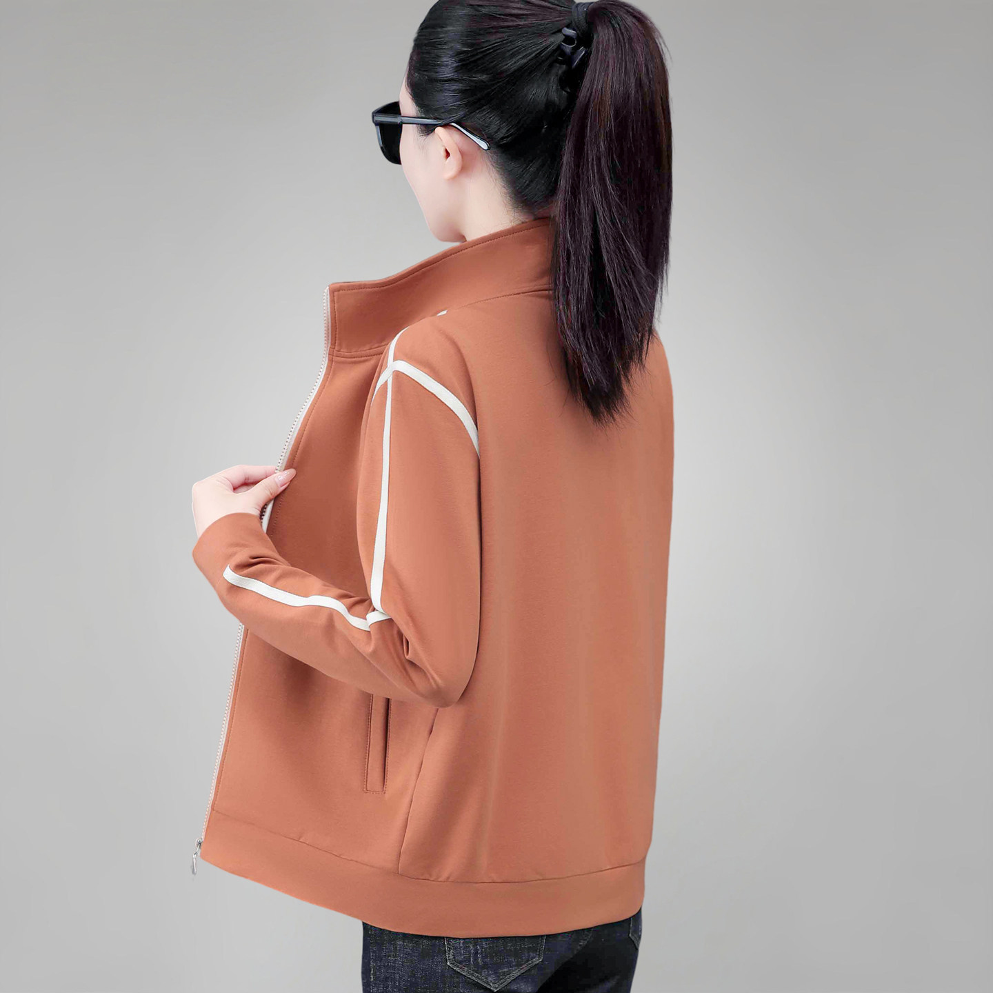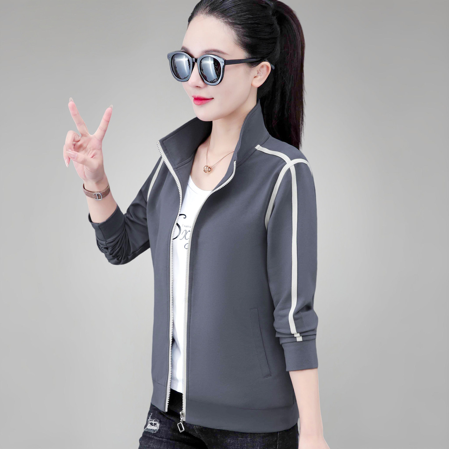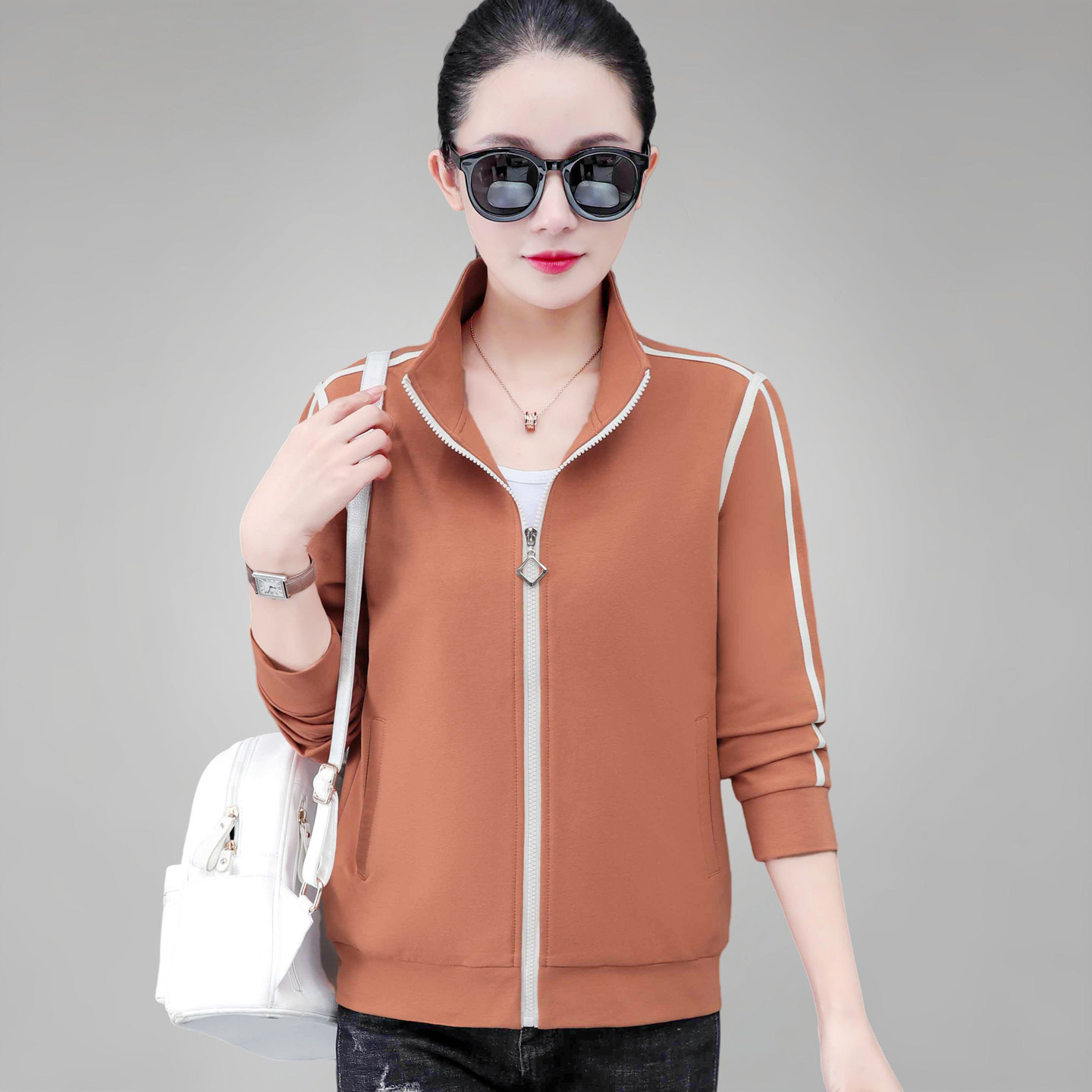 春秋外套女款卫衣2026新款洋气中年妈妈夹克女士短款百搭立领开衫