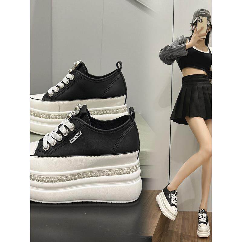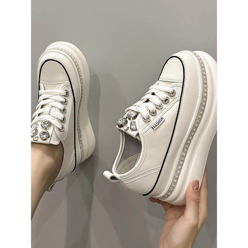 潮牌内增高小白鞋百搭港风女鞋厚底板鞋2025秋冬款真皮运动休闲鞋