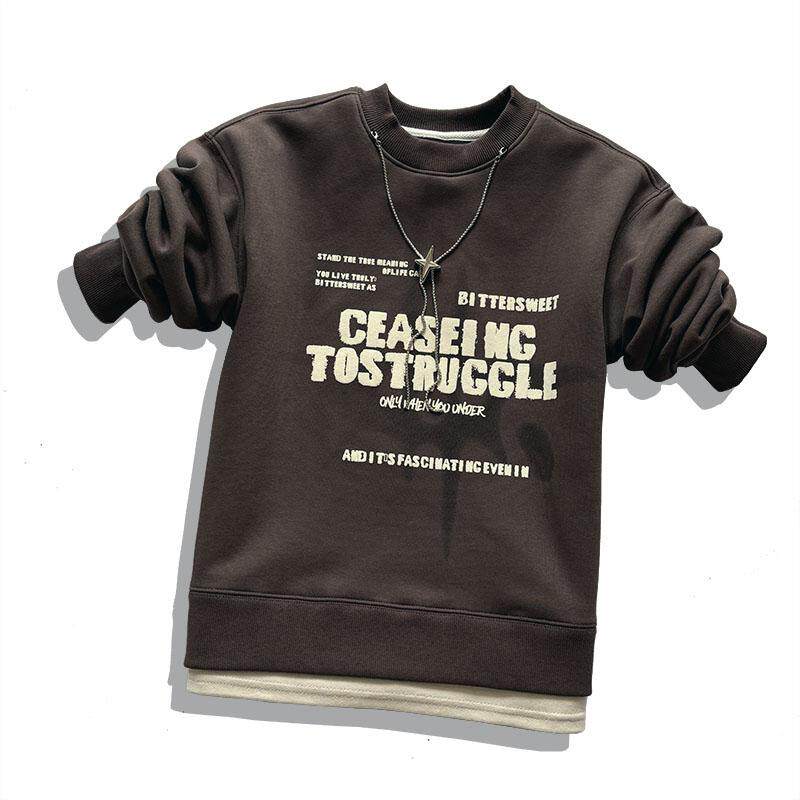 初中学生保暖上衣秋冬装加绒加厚打底衫青少年男大童一体绒卫衣