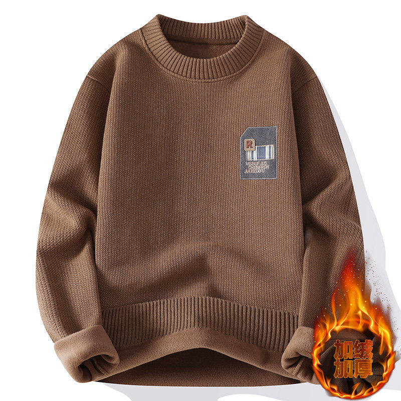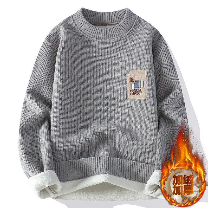 一体绒圆领卫衣男加绒加厚秋冬款青少年初中高中学生大童保暖上衣
