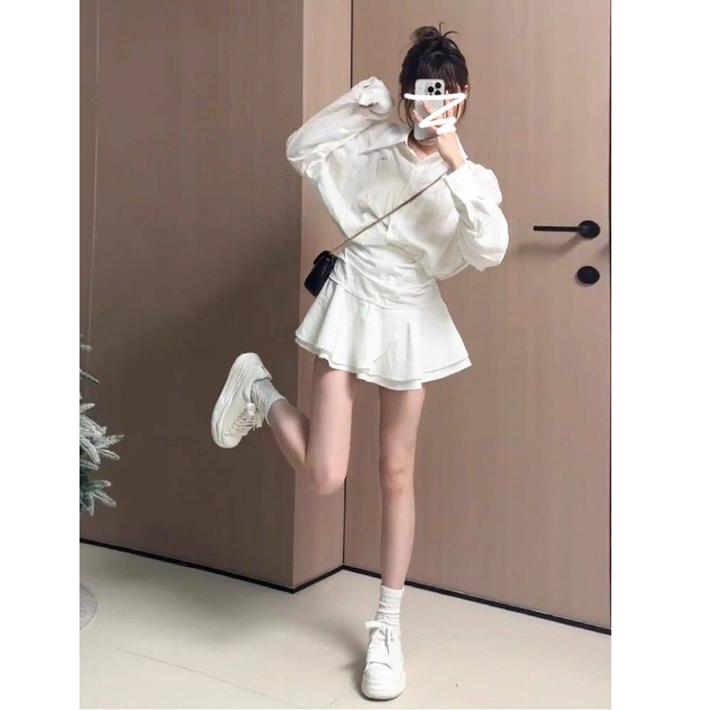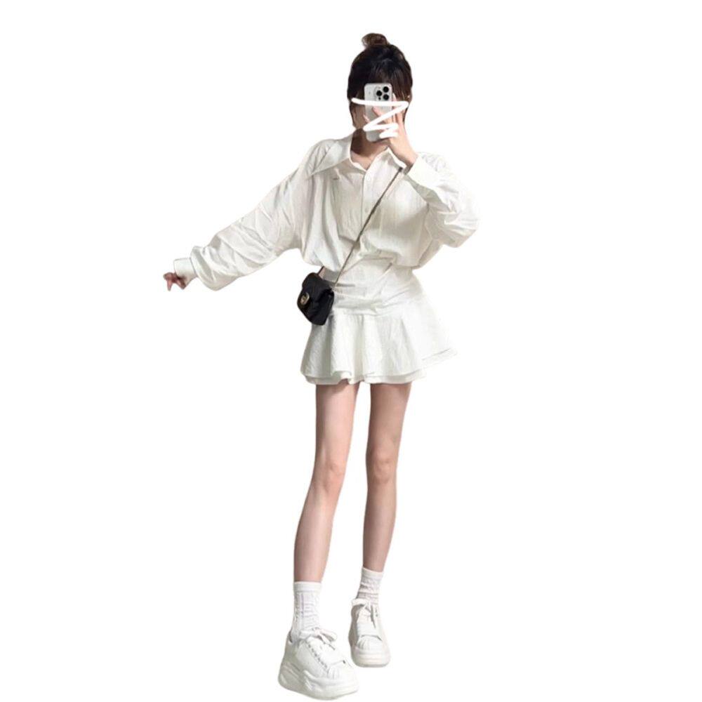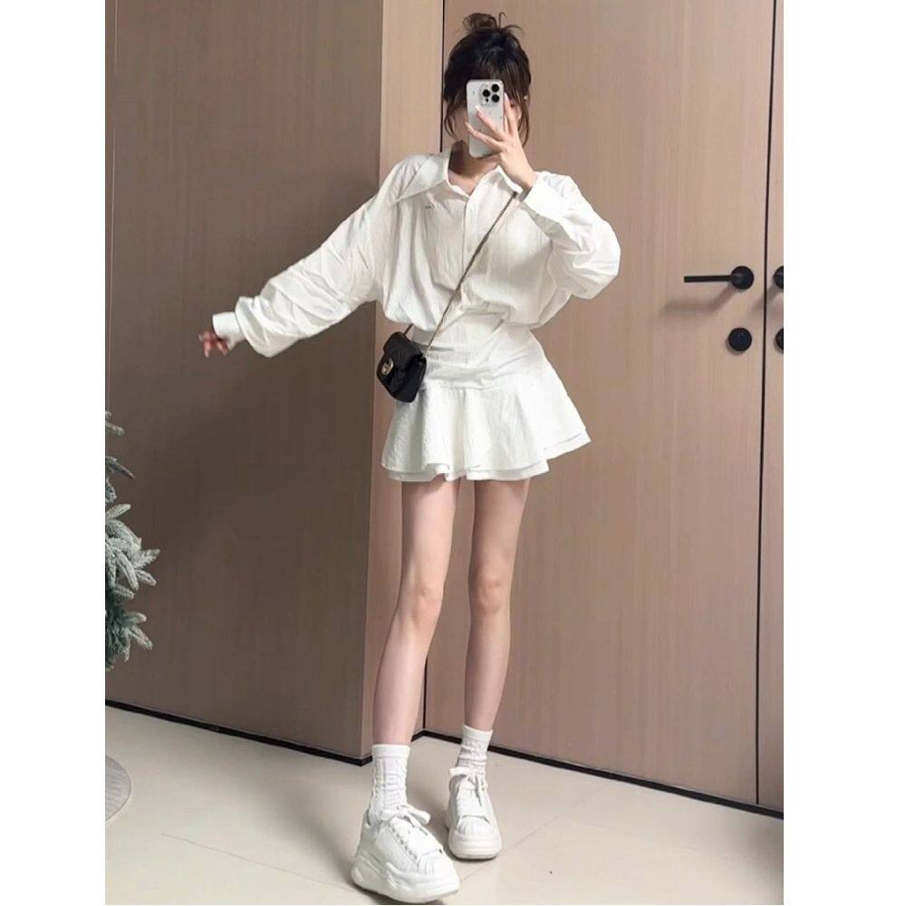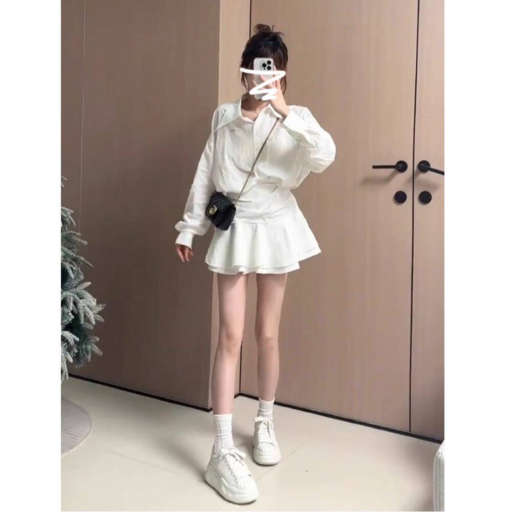 假两件长袖衬衫连衣裙女装春秋小个子法式气质短绝美穿搭雪纺短裙