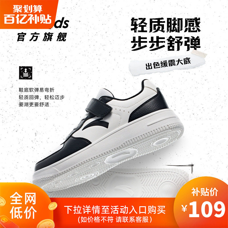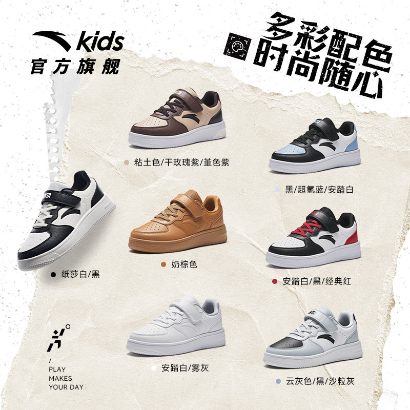安踏儿童学生低帮板鞋男大童小白鞋女童春秋新款休闲鞋运动鞋童鞋