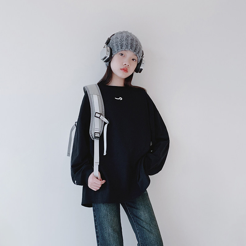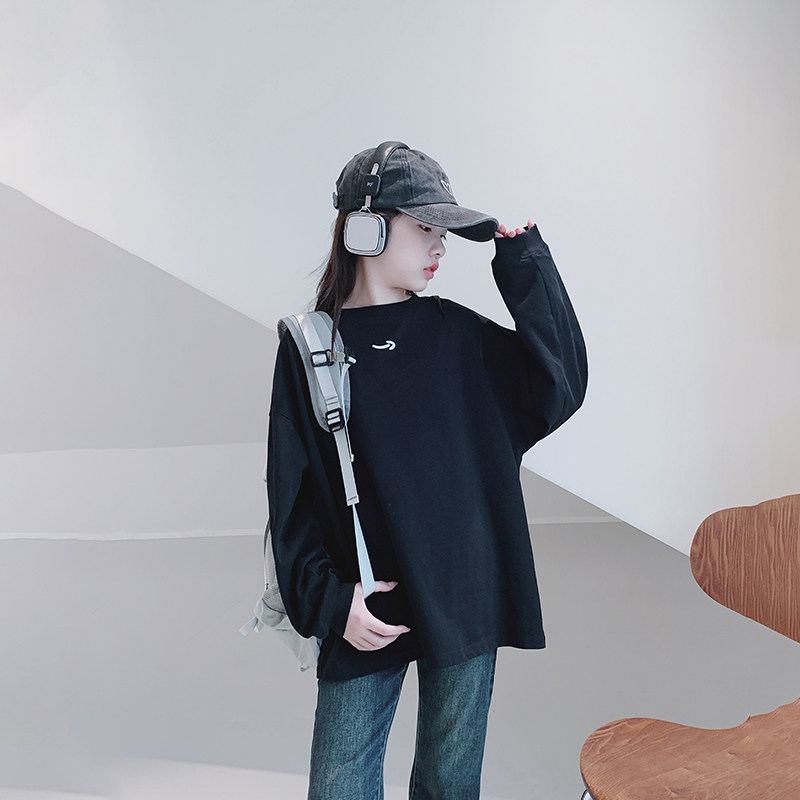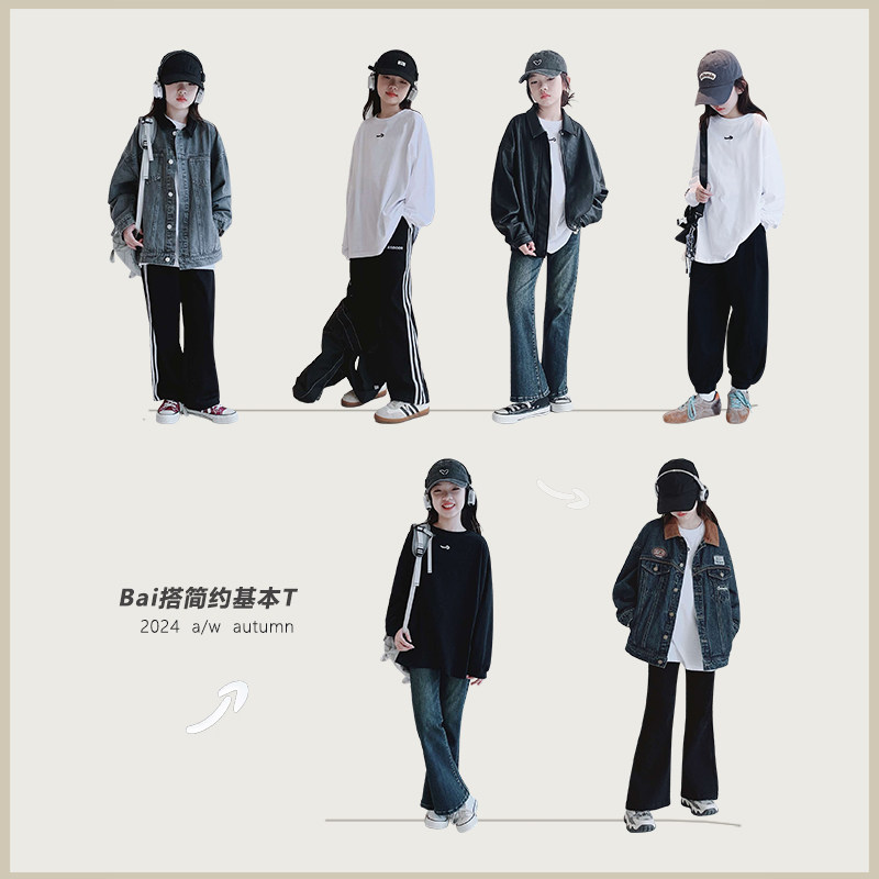 女童长袖T恤 2025秋装新款女大童初中生简约上衣儿童学生打底衫潮