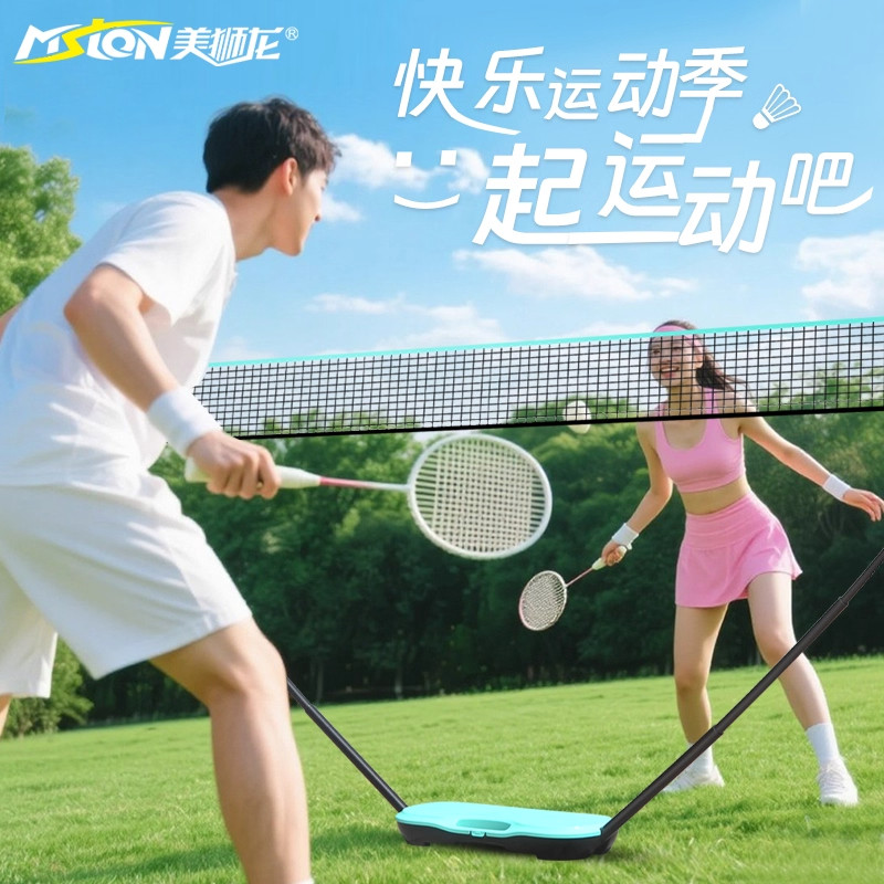 美狮龙羽毛球网便携式家用网架标准隔断网户外可移动支架简易网柱